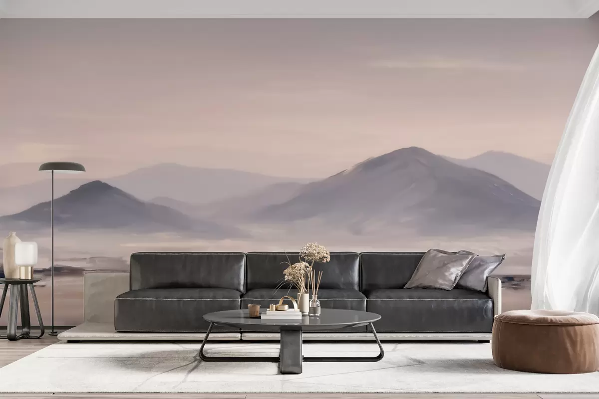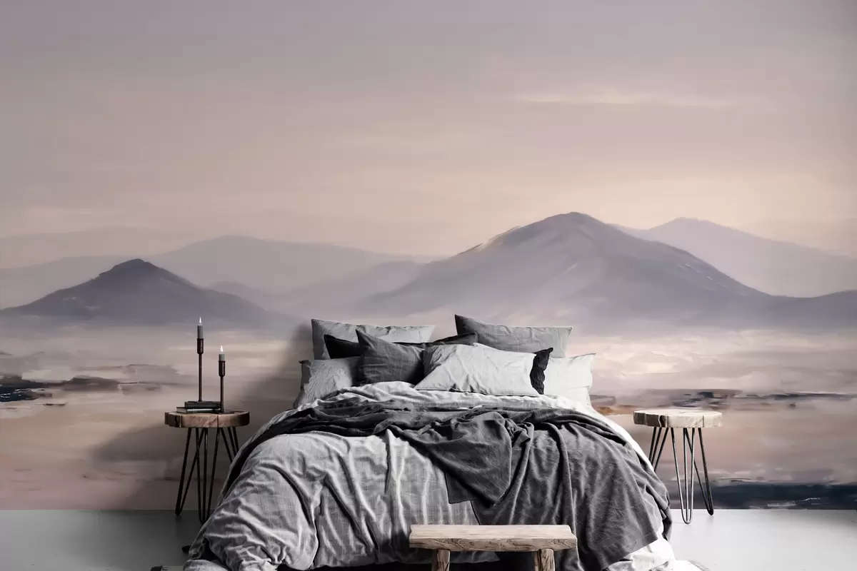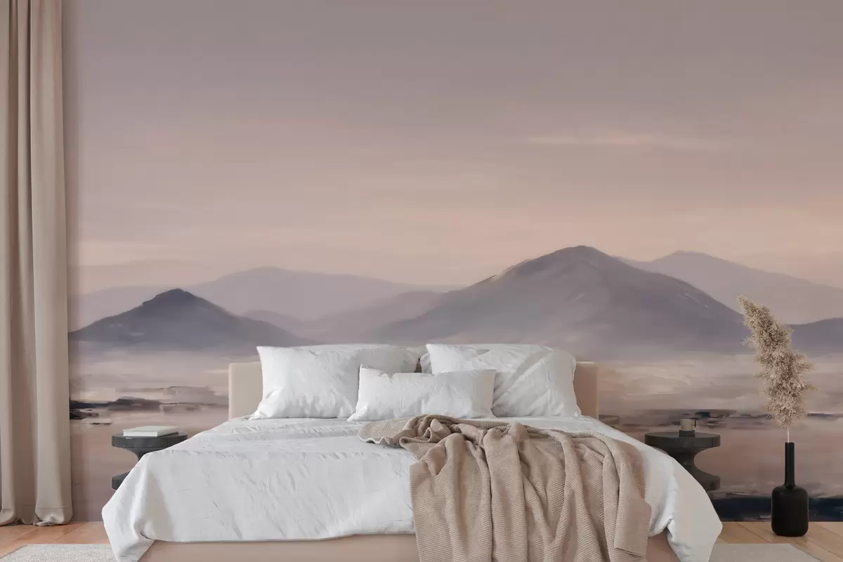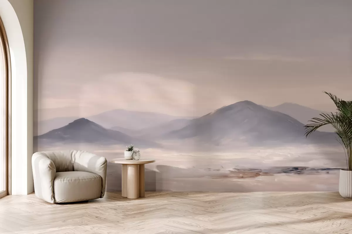 Stenske poslikave Meglena gorska pokrajina z nežnimi prehodi svetlobe in zraka, z učinkom, podobnim maski Št. w09844
