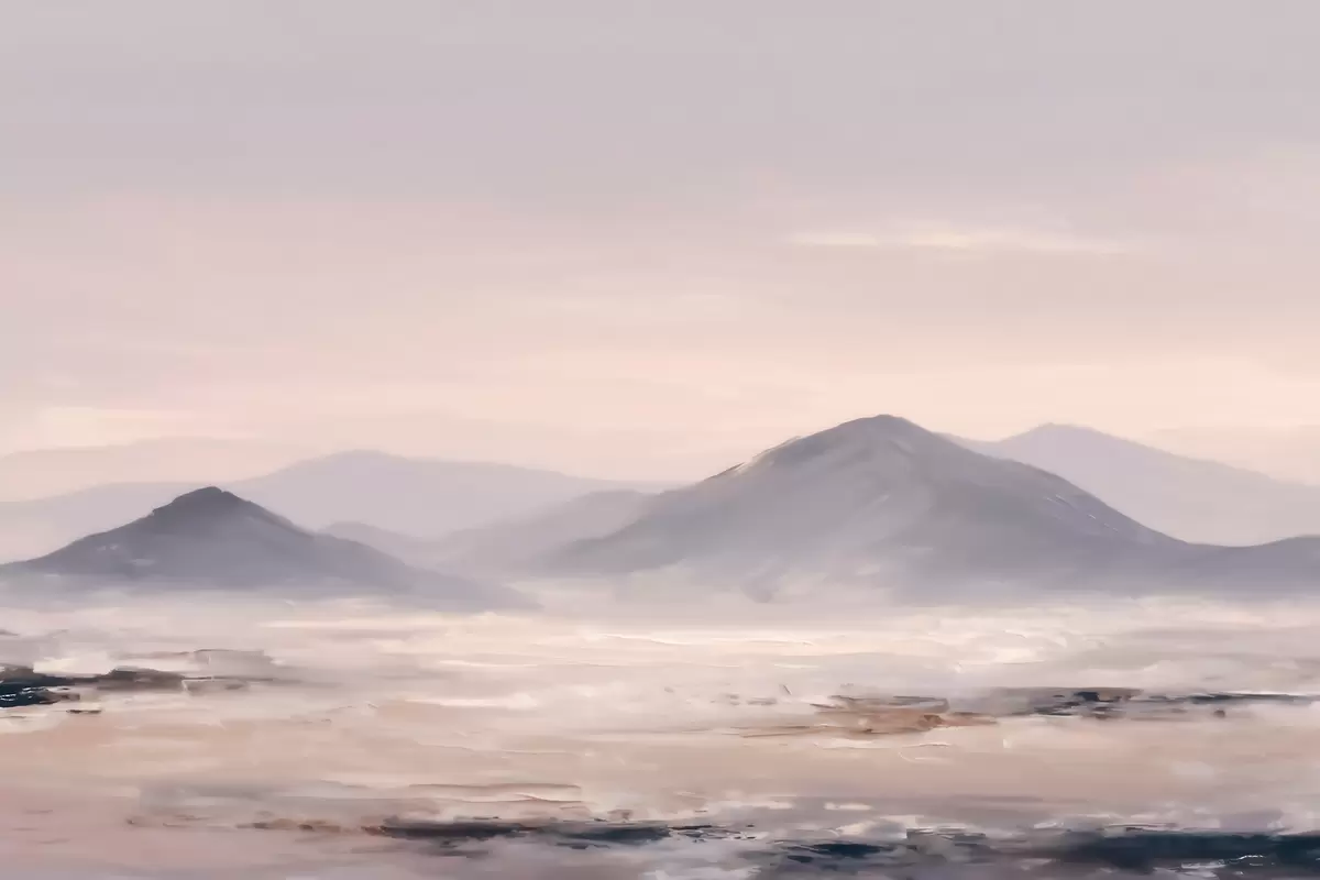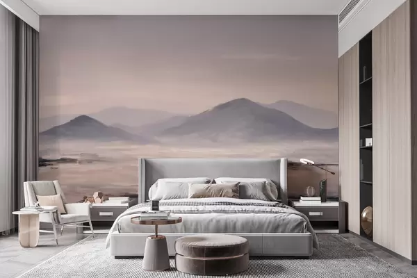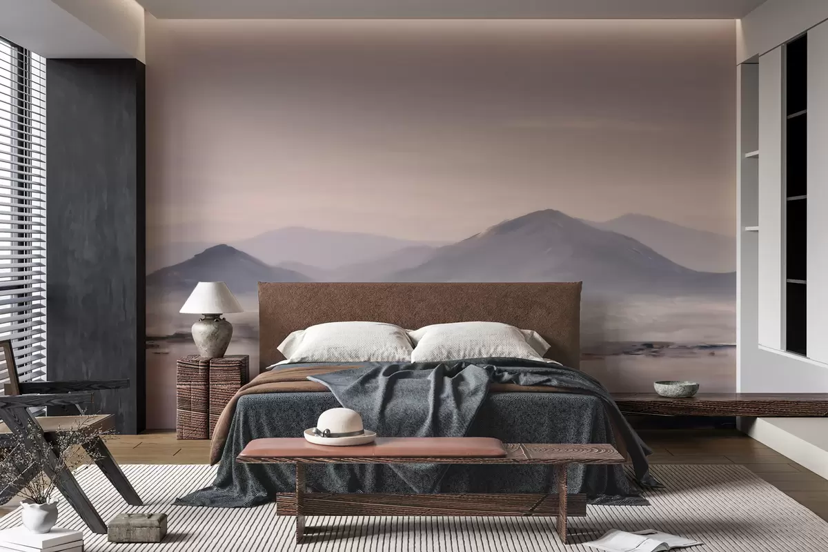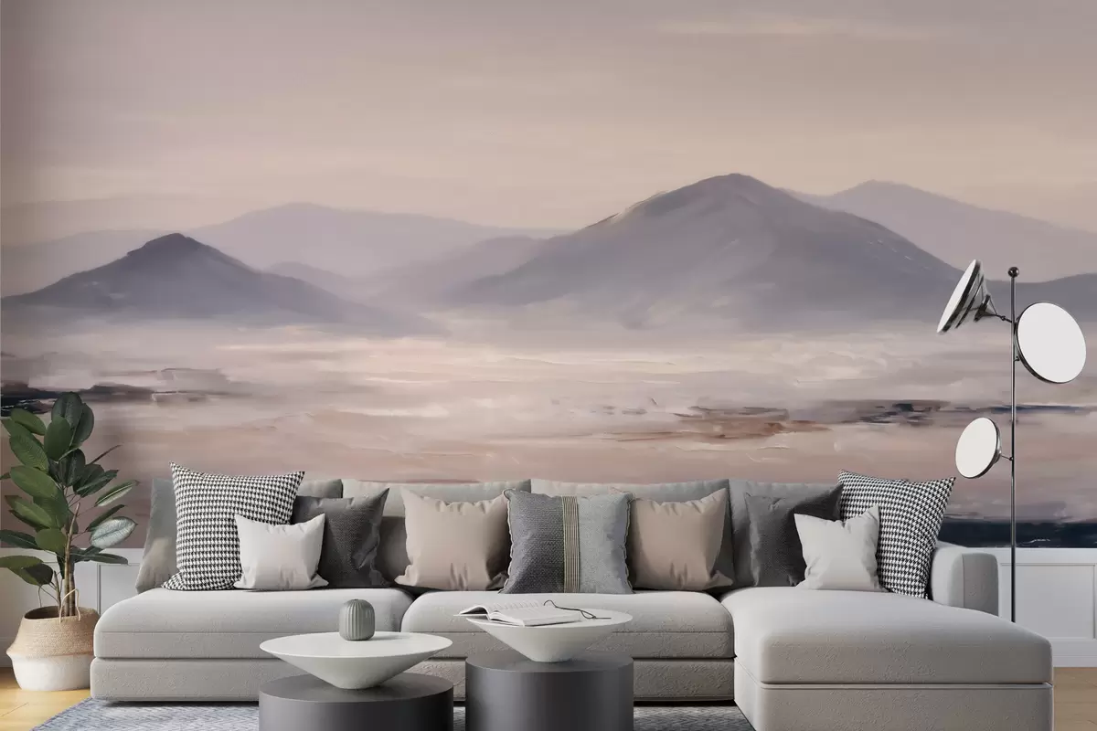 Stenske poslikave Meglena gorska pokrajina z nežnimi prehodi svetlobe in zraka, z učinkom, podobnim maski Št. w09844