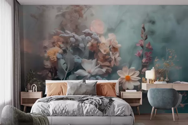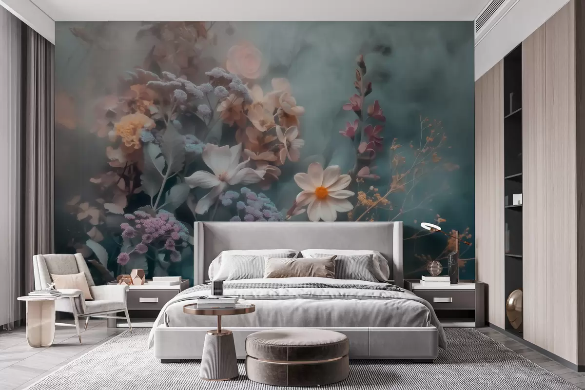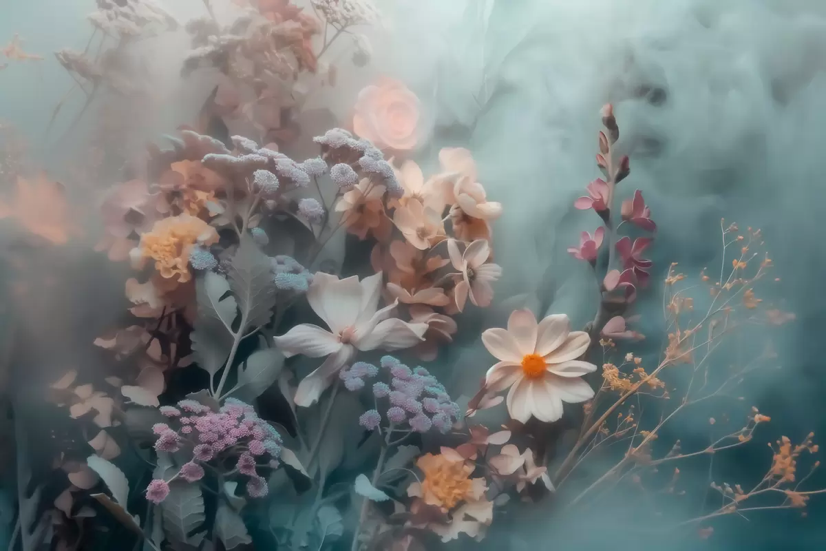 Stenske poslikave Sanjska kompozicija poljskih cvetov v nežnem oblaku pastelnih odtenkov Št. w09846