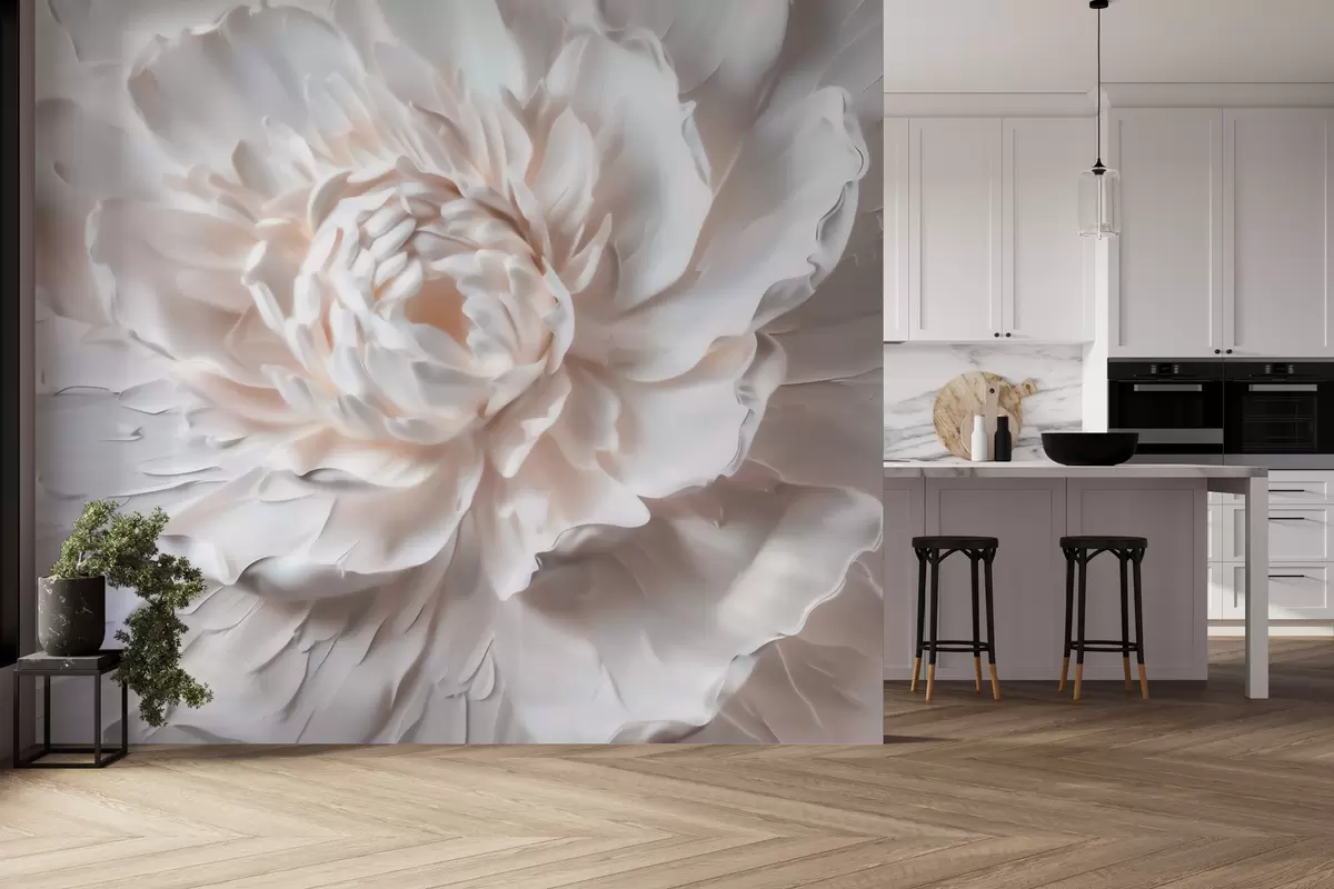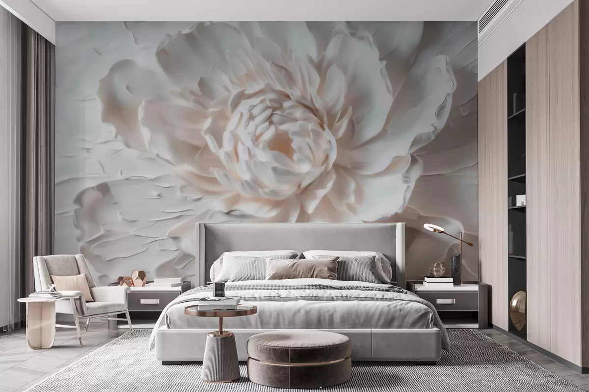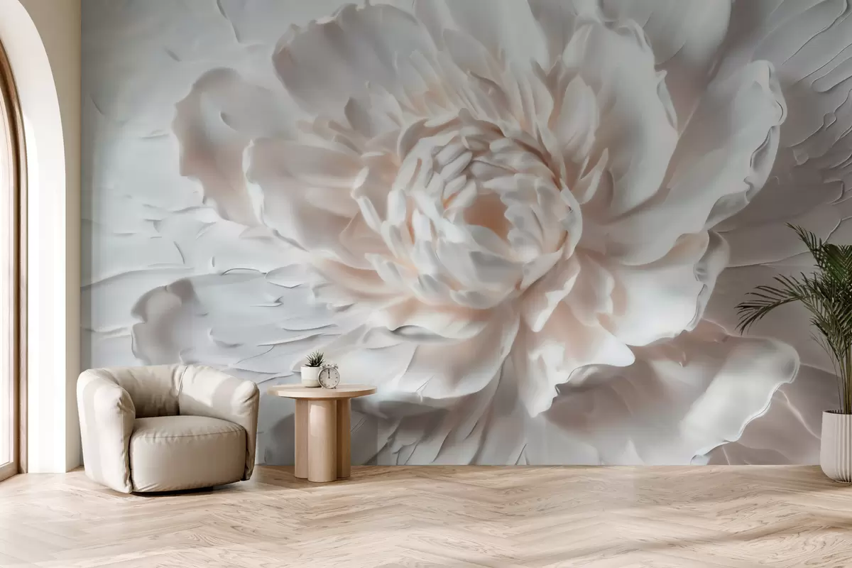 Stenske poslikave Nežna cvetlična reliefna upodobitev z gladkimi cvetnimi listi v svetlih odtenkih Št. w09861