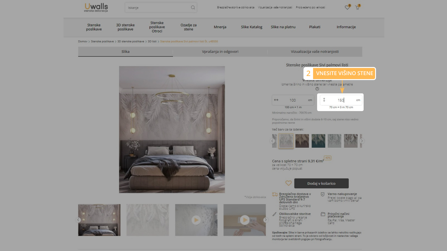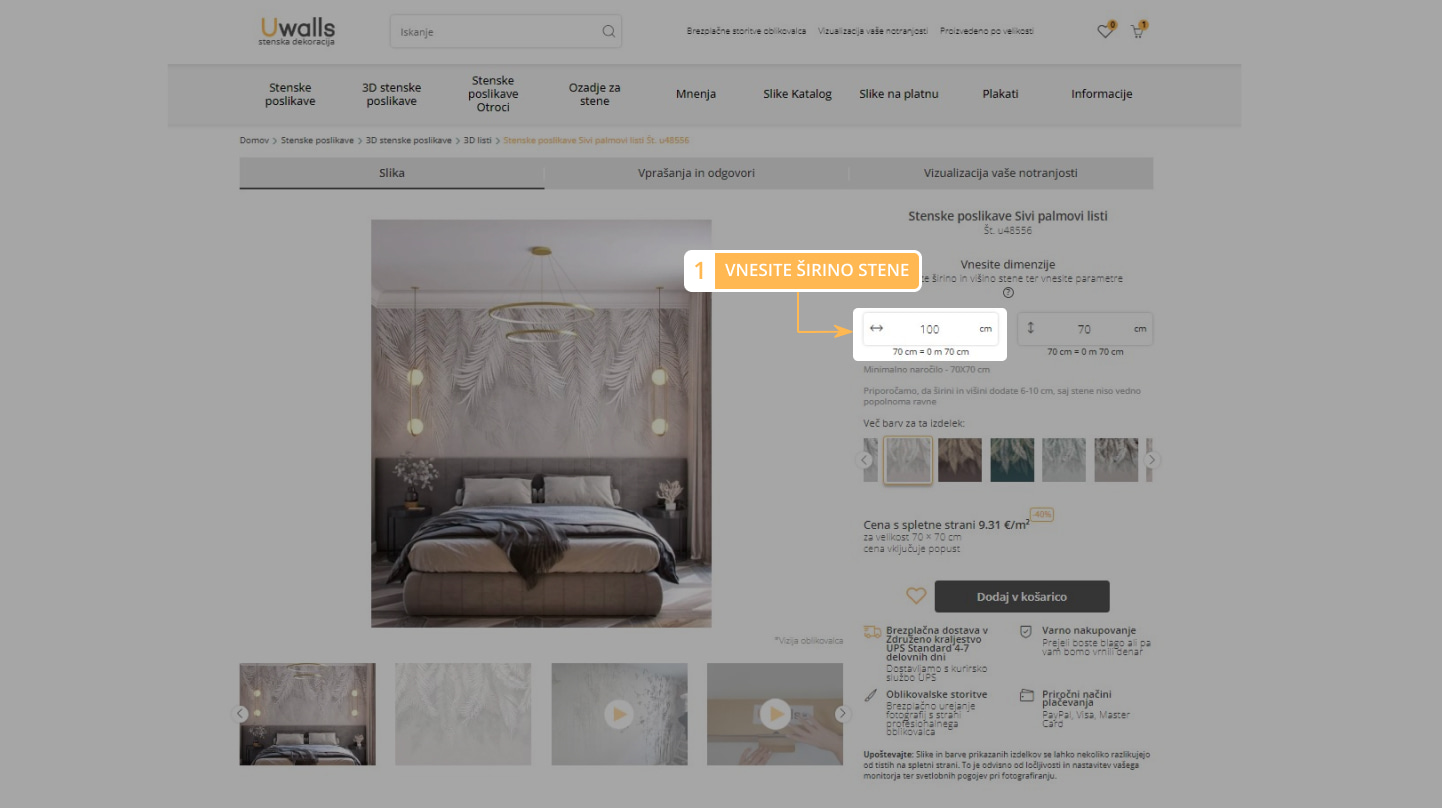 Ogledate si lahko znesek naročila (puščica za prikaz zneska)