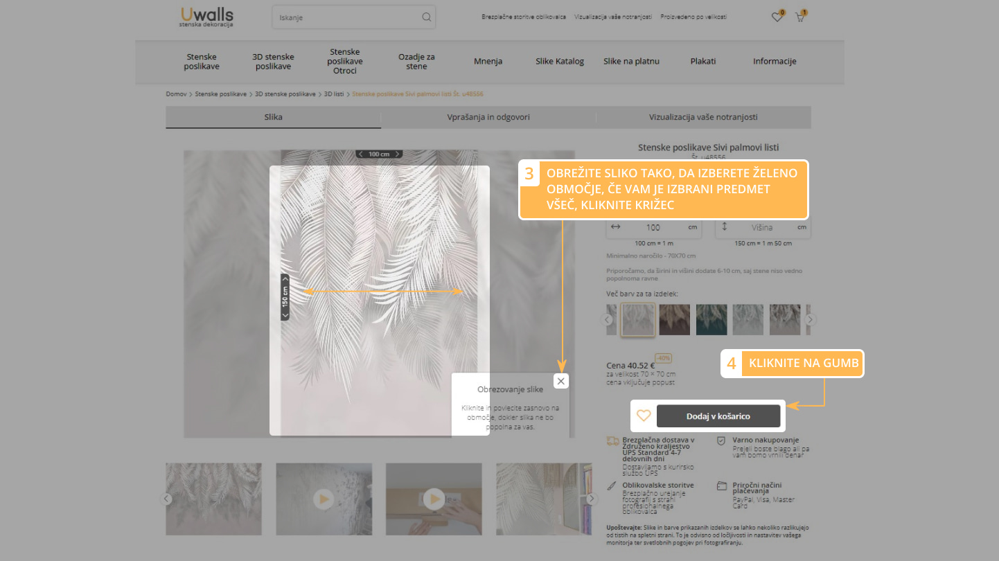 3. Obrežite sliko tako, da izberete želeno območje, če vam je izbrani predmet všeč, kliknite križec