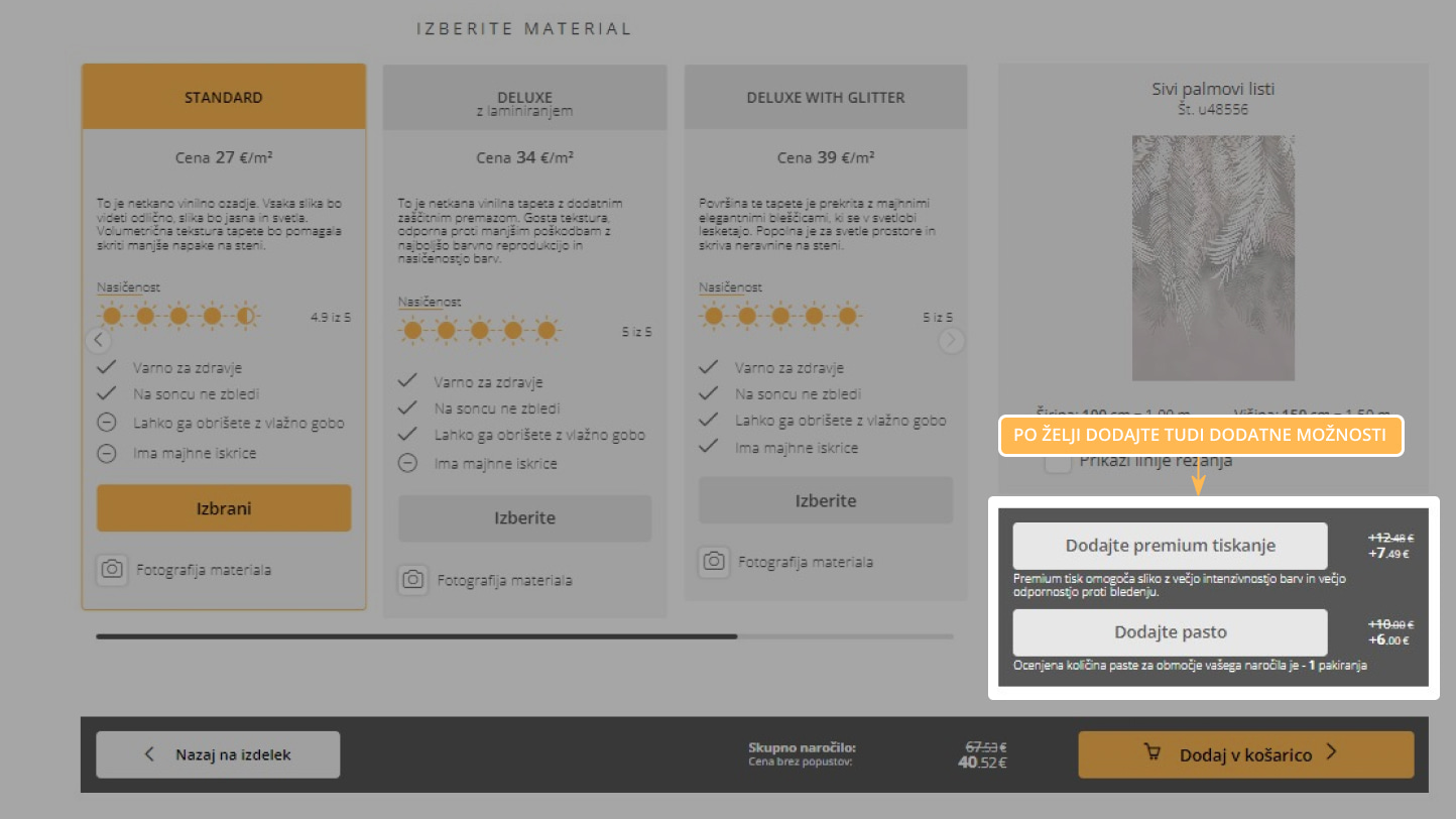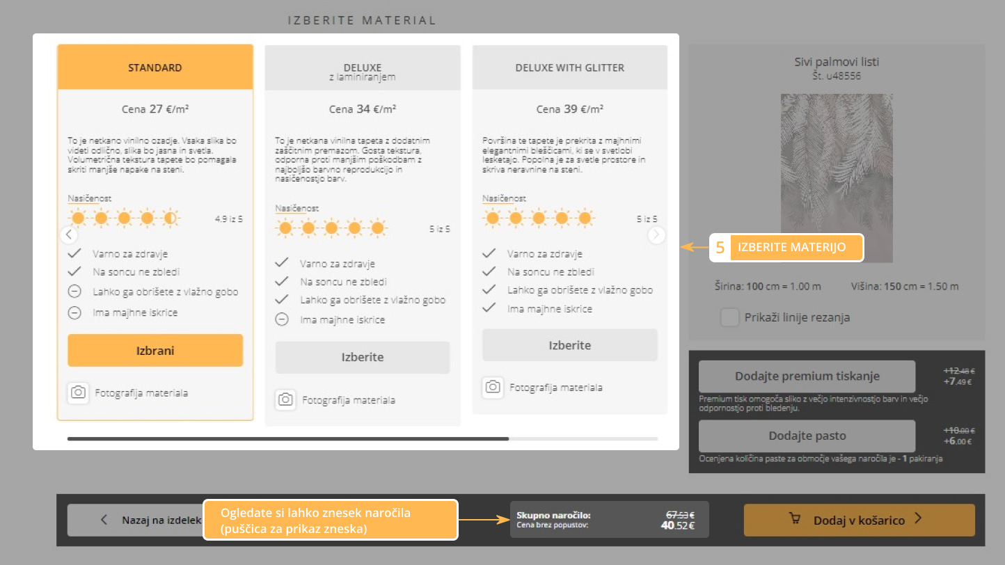 5. Izberite materijo. Po želji dodajte tudi dodatne možnosti