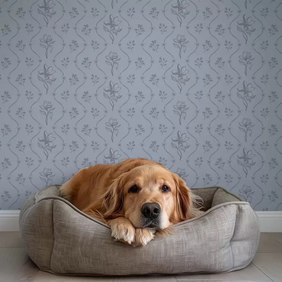 Majhni cvetovi in trakovi v sivo-modri barvni paleti