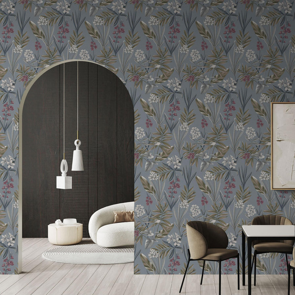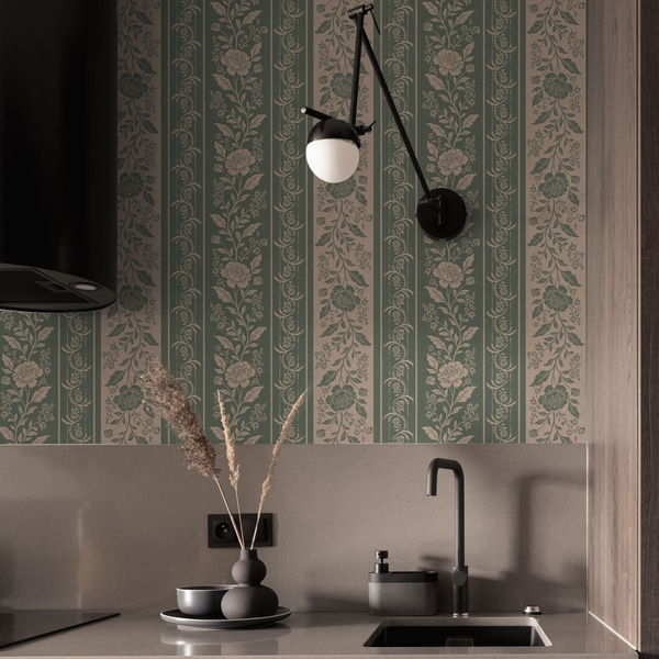 Temno zeleno ozadje z okrasnimi cvetovi in listi