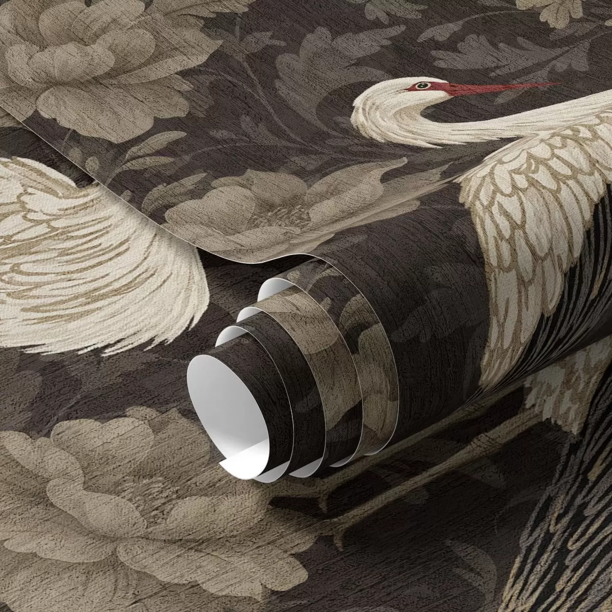 Tapeta Žerjavi med velikimi cvetovi v klasični pastelni paleti Št. a00108