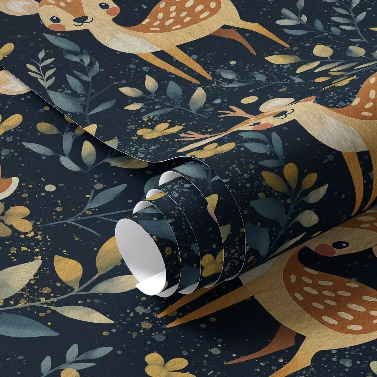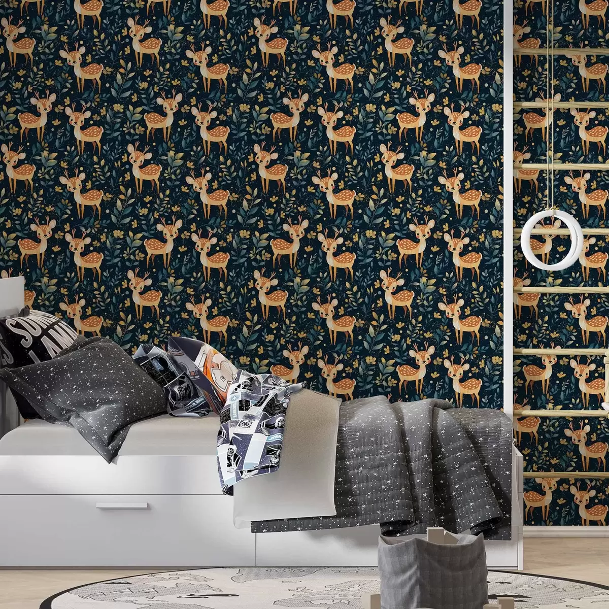 Tapeta Jelenček v temnem gozdu z rumenimi listi Št. a00124