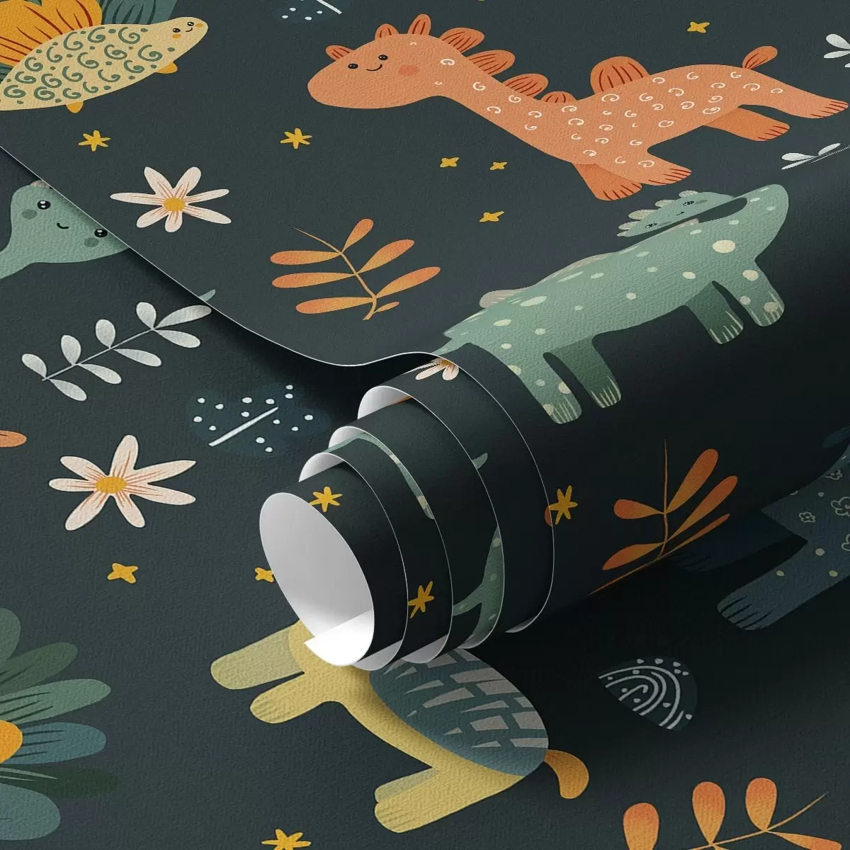 Tapeta Smešni dinozavri v pastelnih barvah na temnem ozadju Št. a00125v2