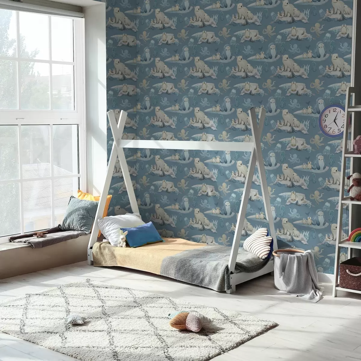 Tapeta Arktične živali v akvarelnem slogu za otroško sobo Št. a00137