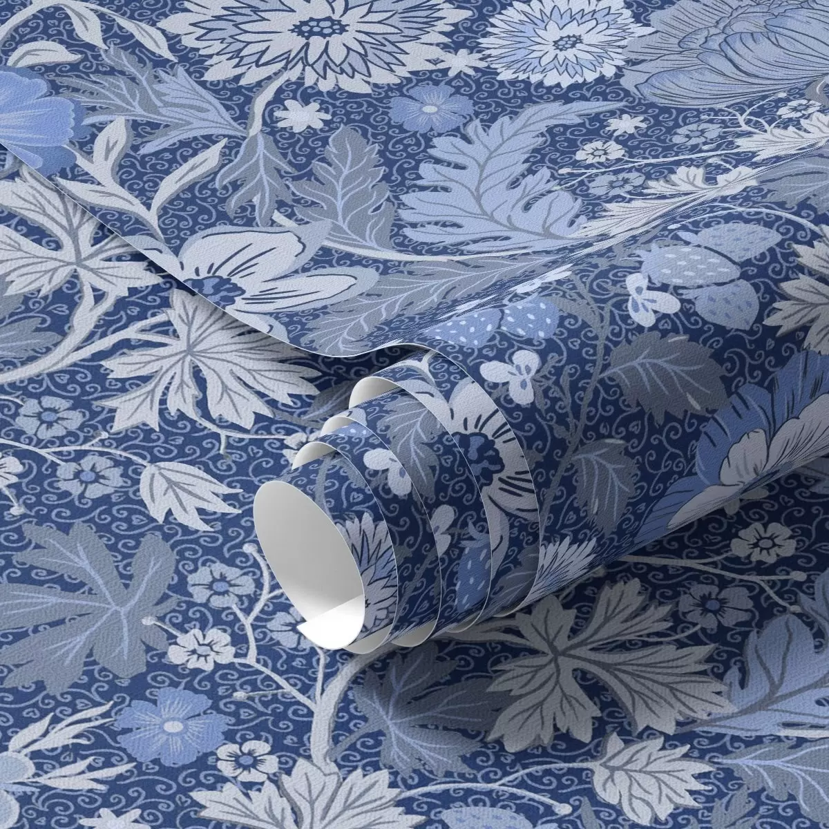Tapeta Modri botanični tisk v vintage slogu Št. a00145v2