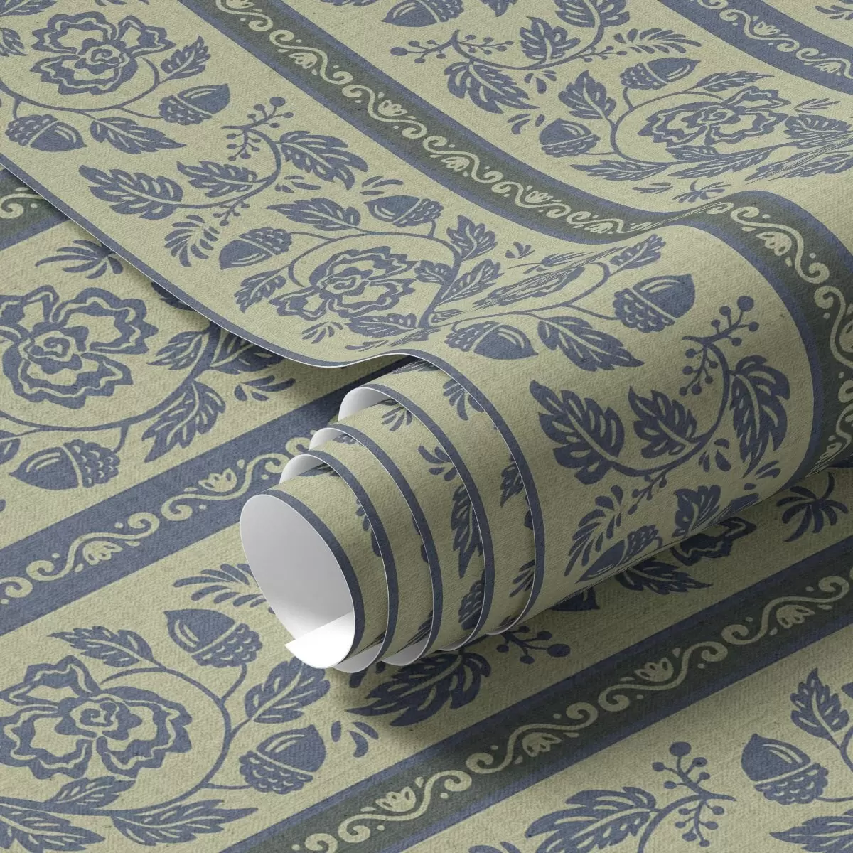 Tapeta Modri okrasek z rožami in želodi v starinskem slogu Št. a00181v1