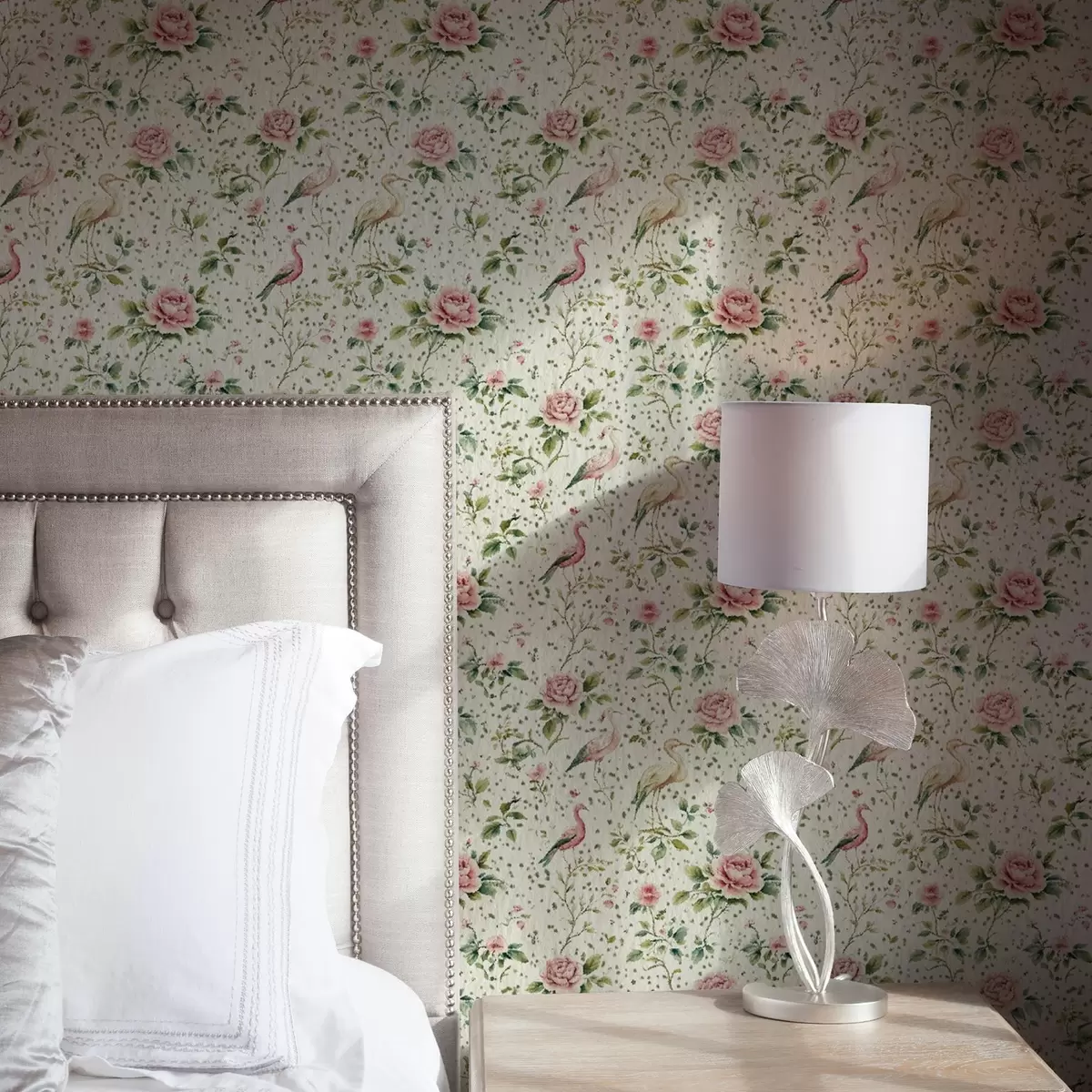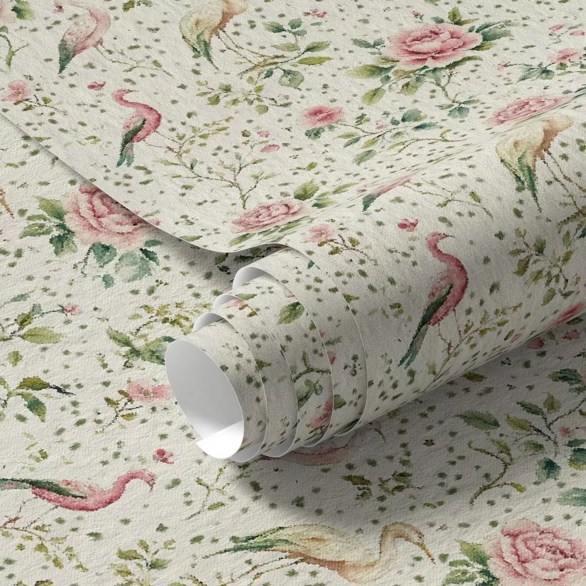 Tapeta Pastelno roza vrtnice in ptice v stilu shabby chic Št. a00201