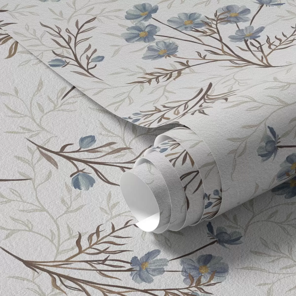 Tapeta Modro cvetje in svetle veje na belem ozadju Št. a00265v1