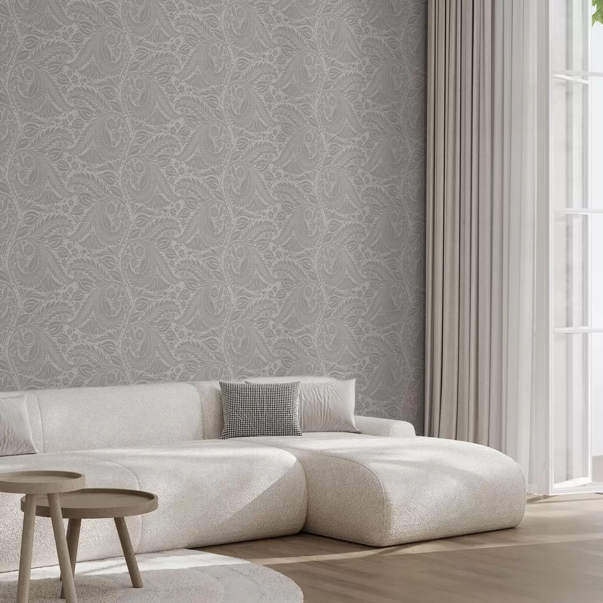Tapeta Siva folklorna stilizacija z listi in cvetovi Št. a00301