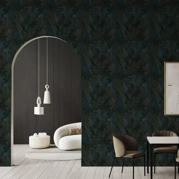 Tapeta Temno zeleno tropsko listje z modrimi poudarki Št. a00327