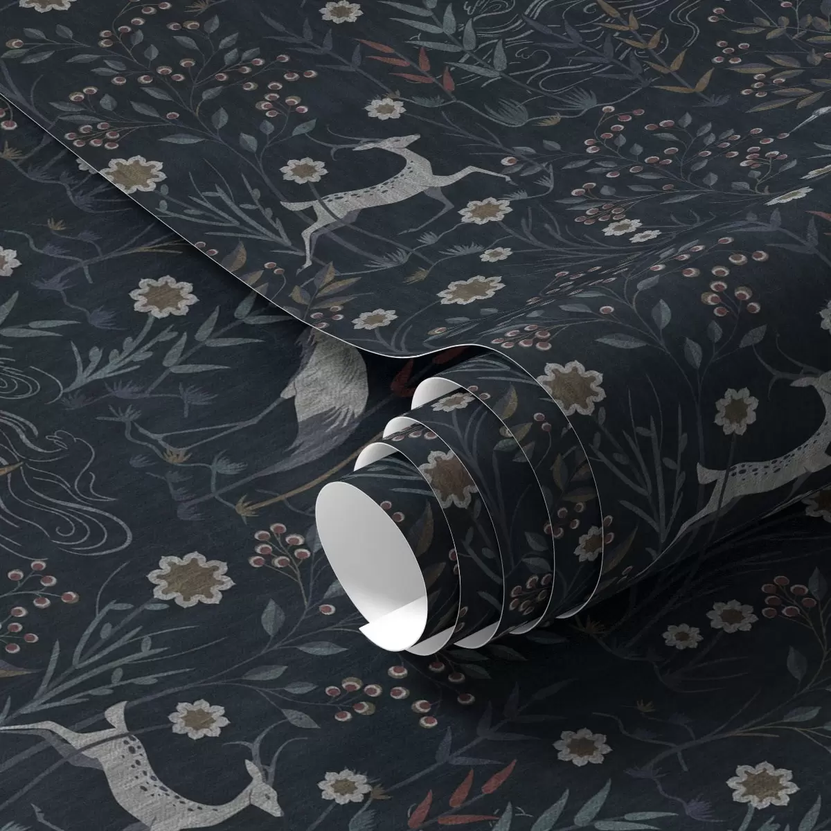 Tapeta Temno ozadje z belimi pticami in jelenom Št. a00363