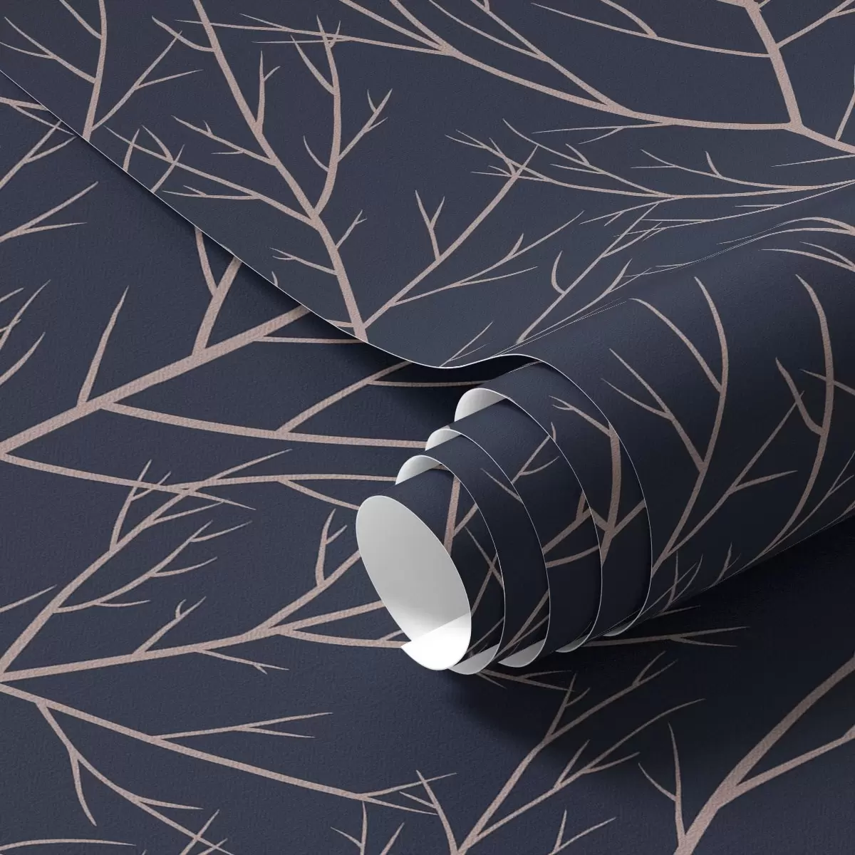 Tapeta Mehke rdeče veje na temno mornarsko modrem ozadju Št. a00451