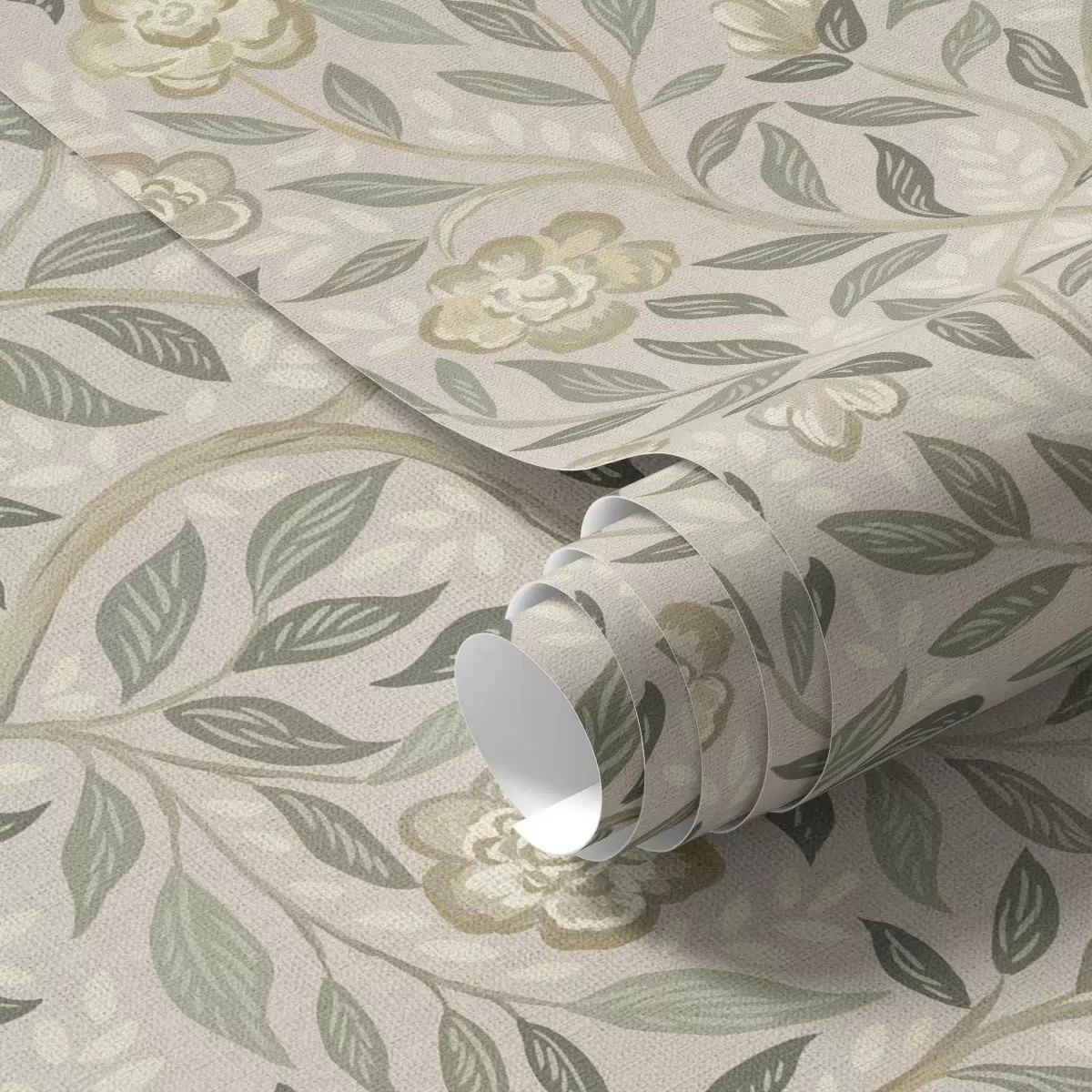 Tapeta Kremaste vrtnice in oljčni listi na prašno rožnatem ozadju Št. a00455