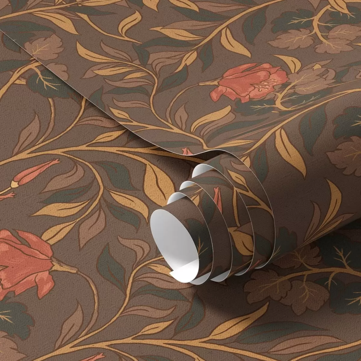 Tapeta Cvetoče veje terakote na rjavem ozadju Št. a00460