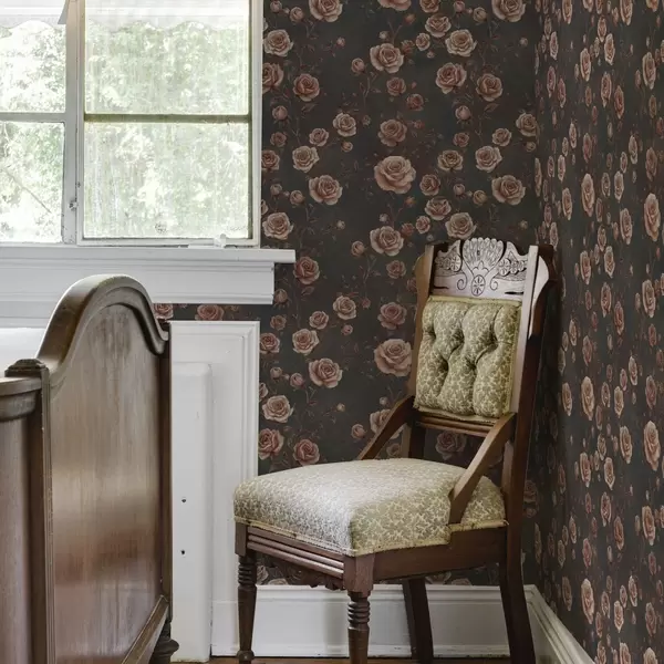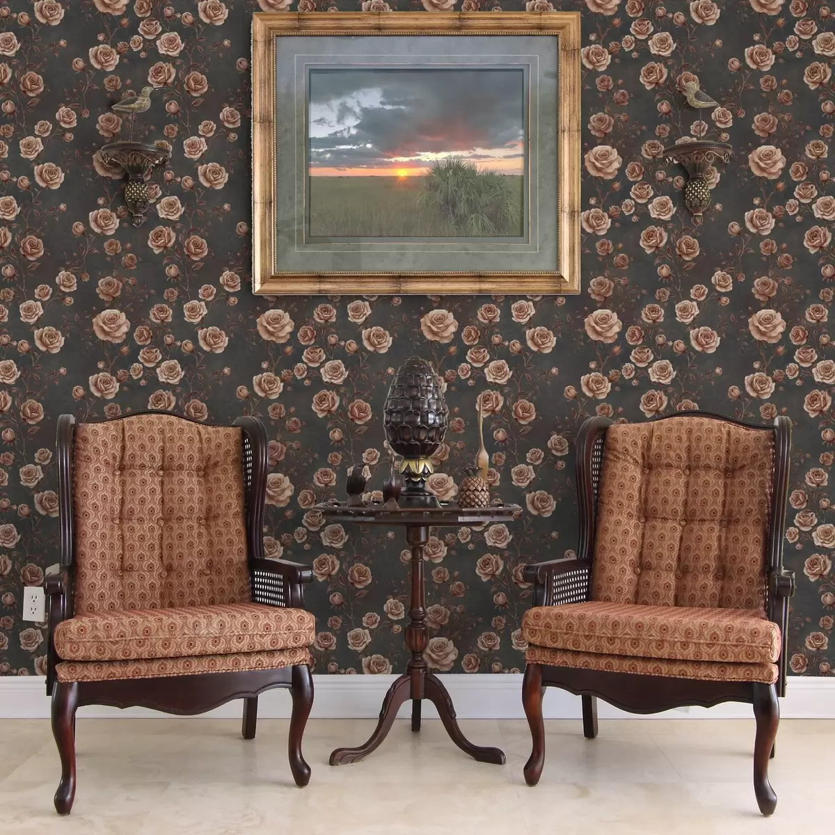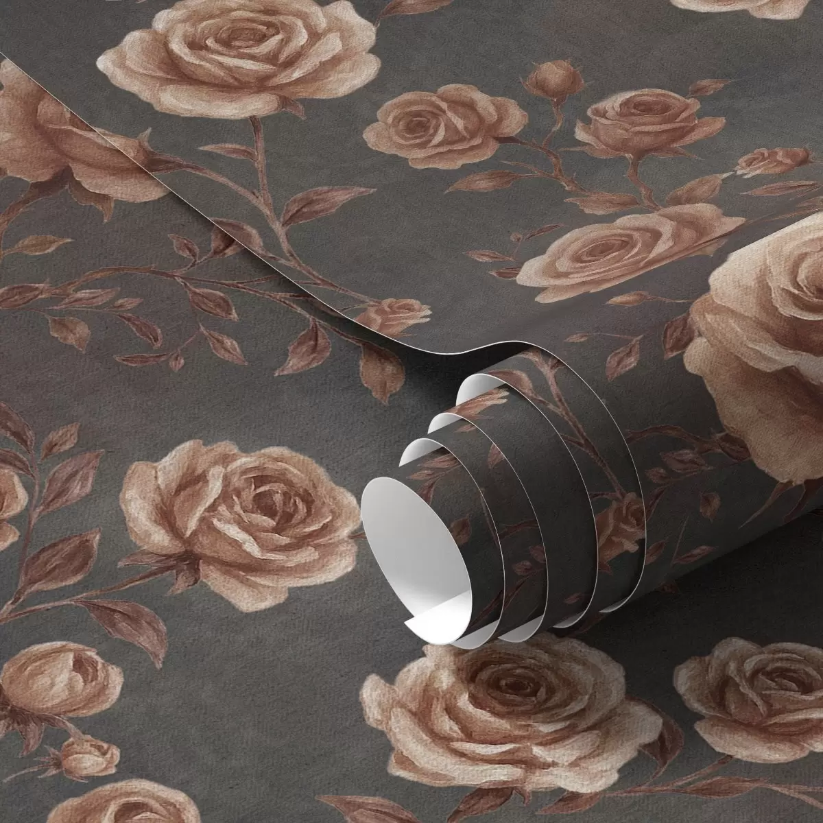 Tapeta Vintage vrtnice na grafitnem ozadju, terakotna paleta Št. a00497v1