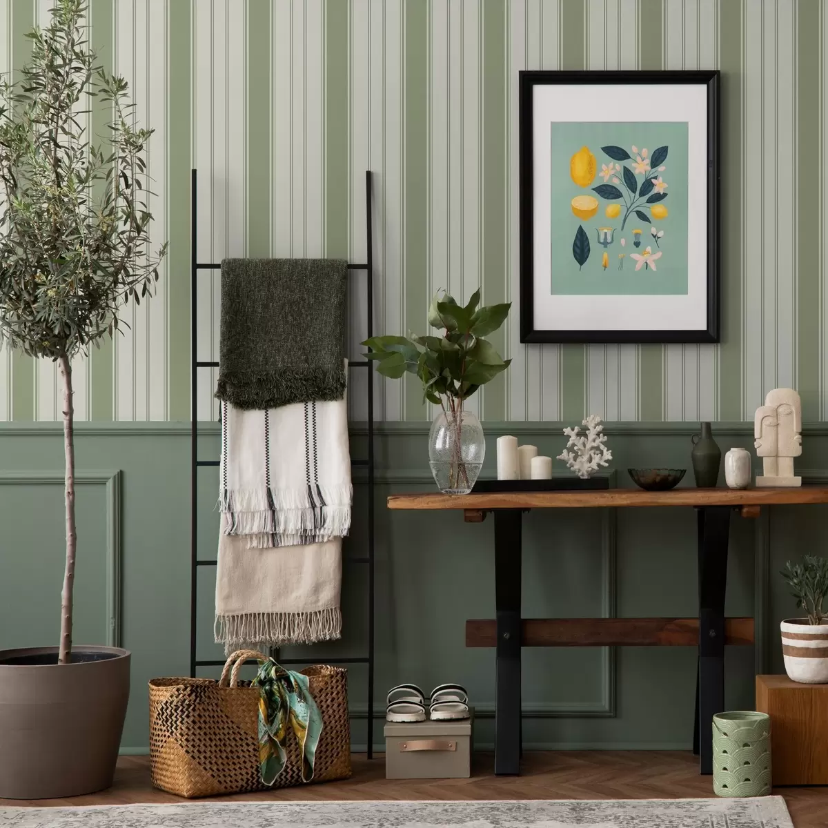 Tapeta Kremasto ozadje z enakomerno zelenimi navpičnimi črtami Št. a00560