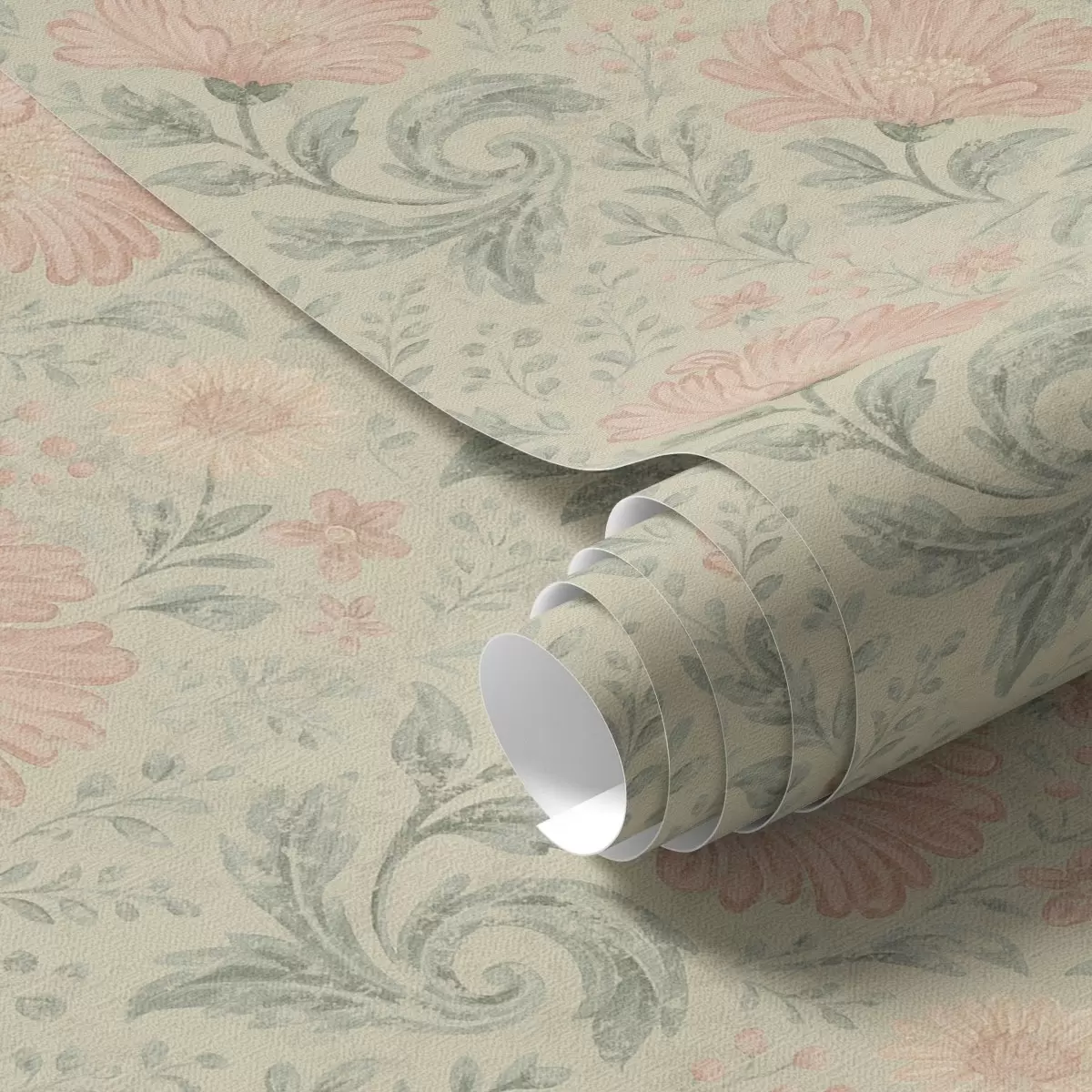 Tapeta Vintage veliki cvetovi breskve z listi žajblja Št. a00580