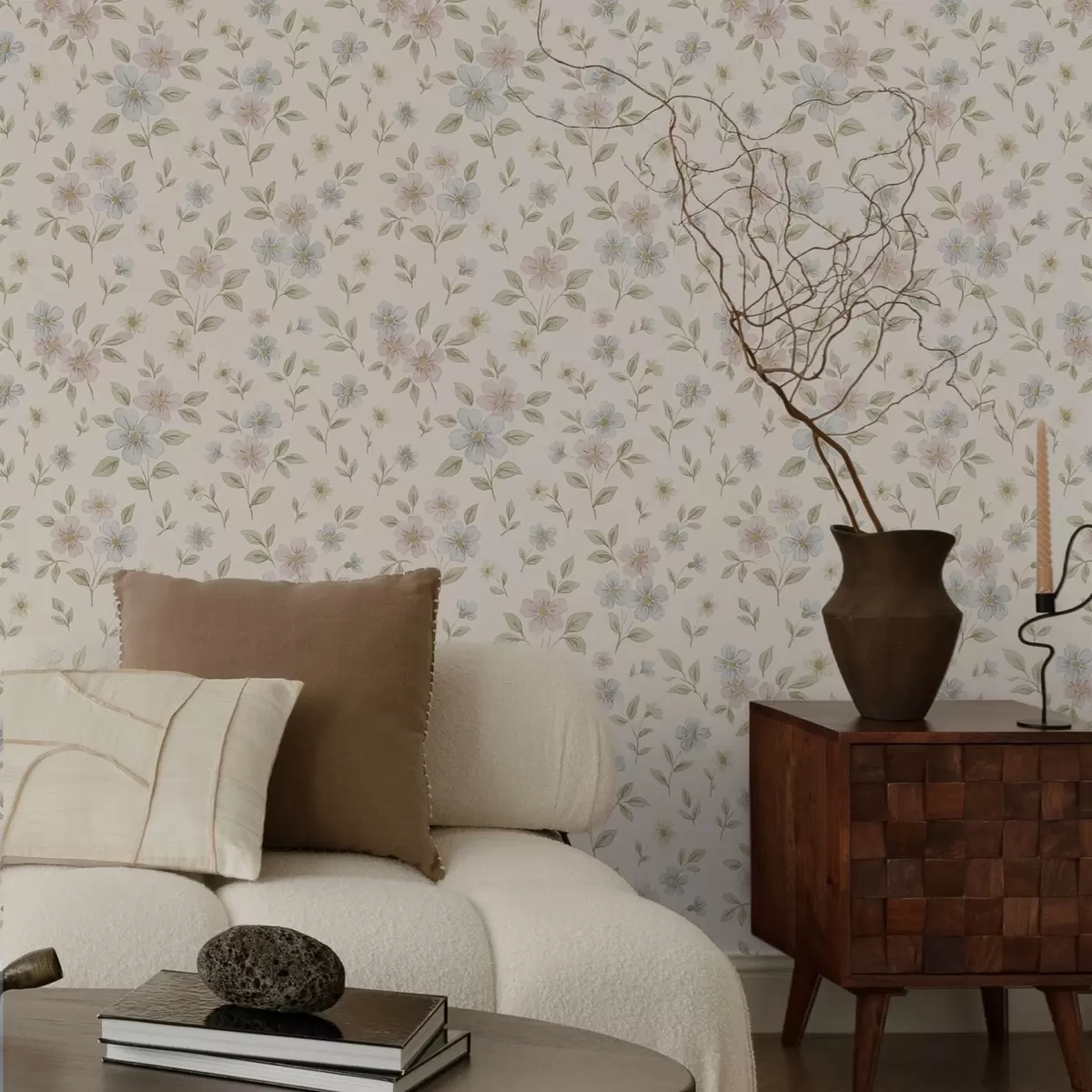 Tapeta Pastelne travniške rože na kremastem ozadju Št. a00596