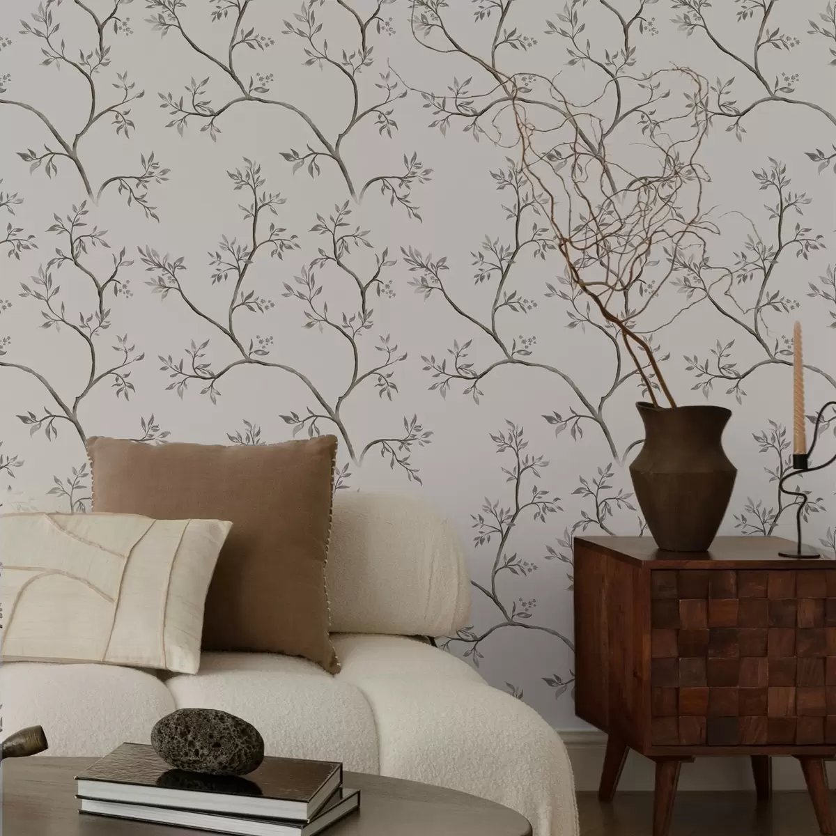 Tapeta Nežne listnate veje na toplem kremastem ozadju Št. a00597v1