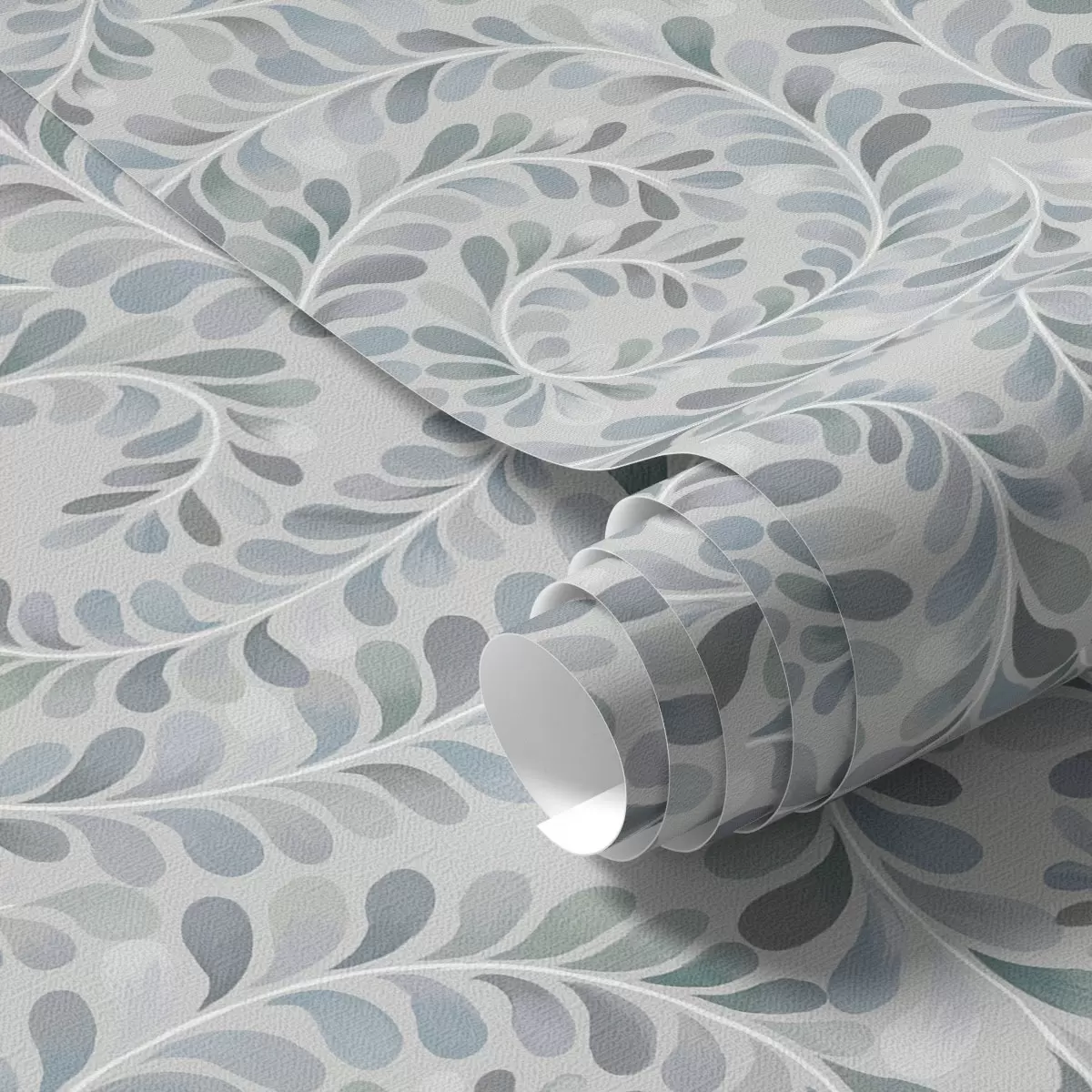 Tapeta Spiralni listi v modro-sivo-zeleni barvni paleti Št. a00602