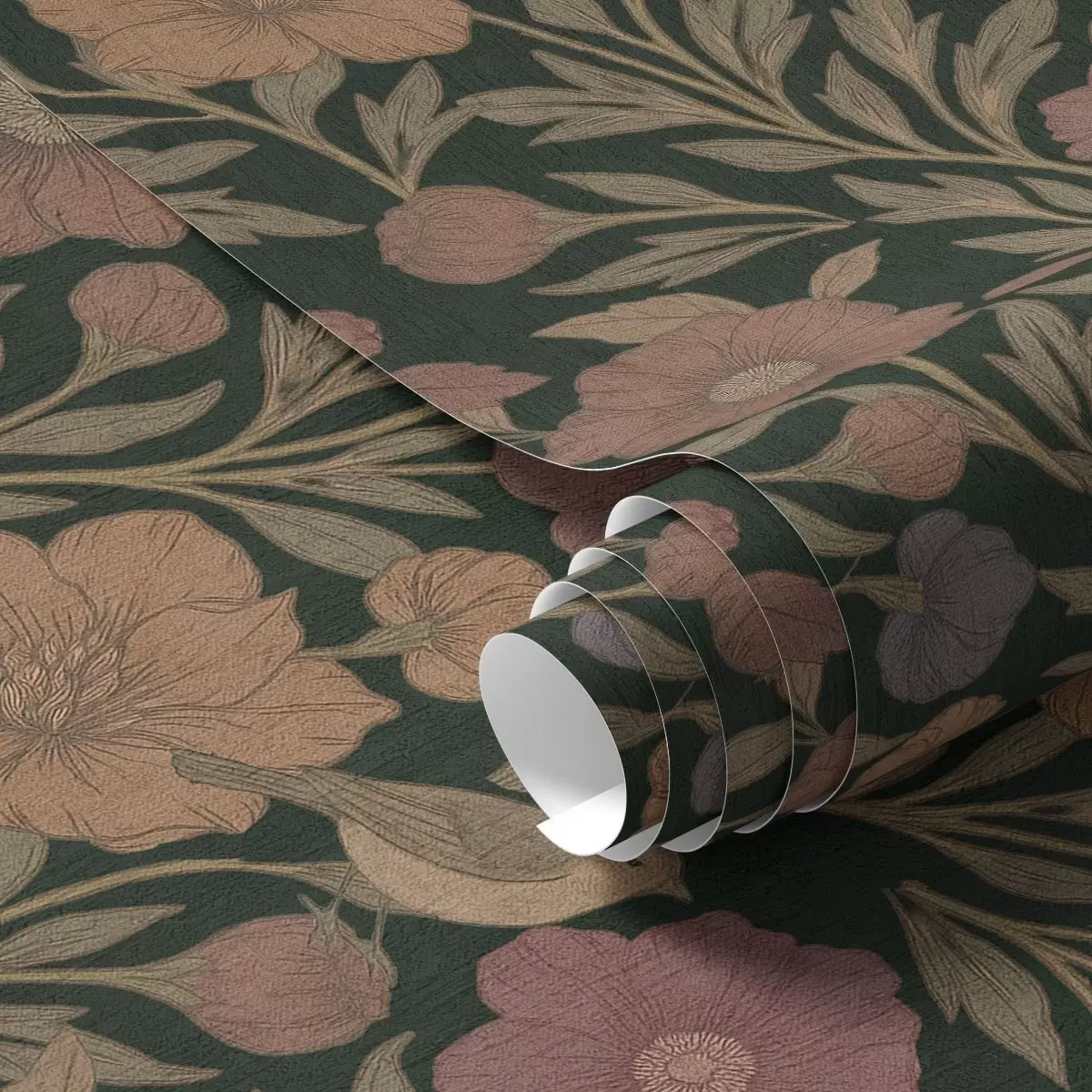 Tapeta Jesenske rože in ptice na temno smaragdnem ozadju Št. a00605v1
