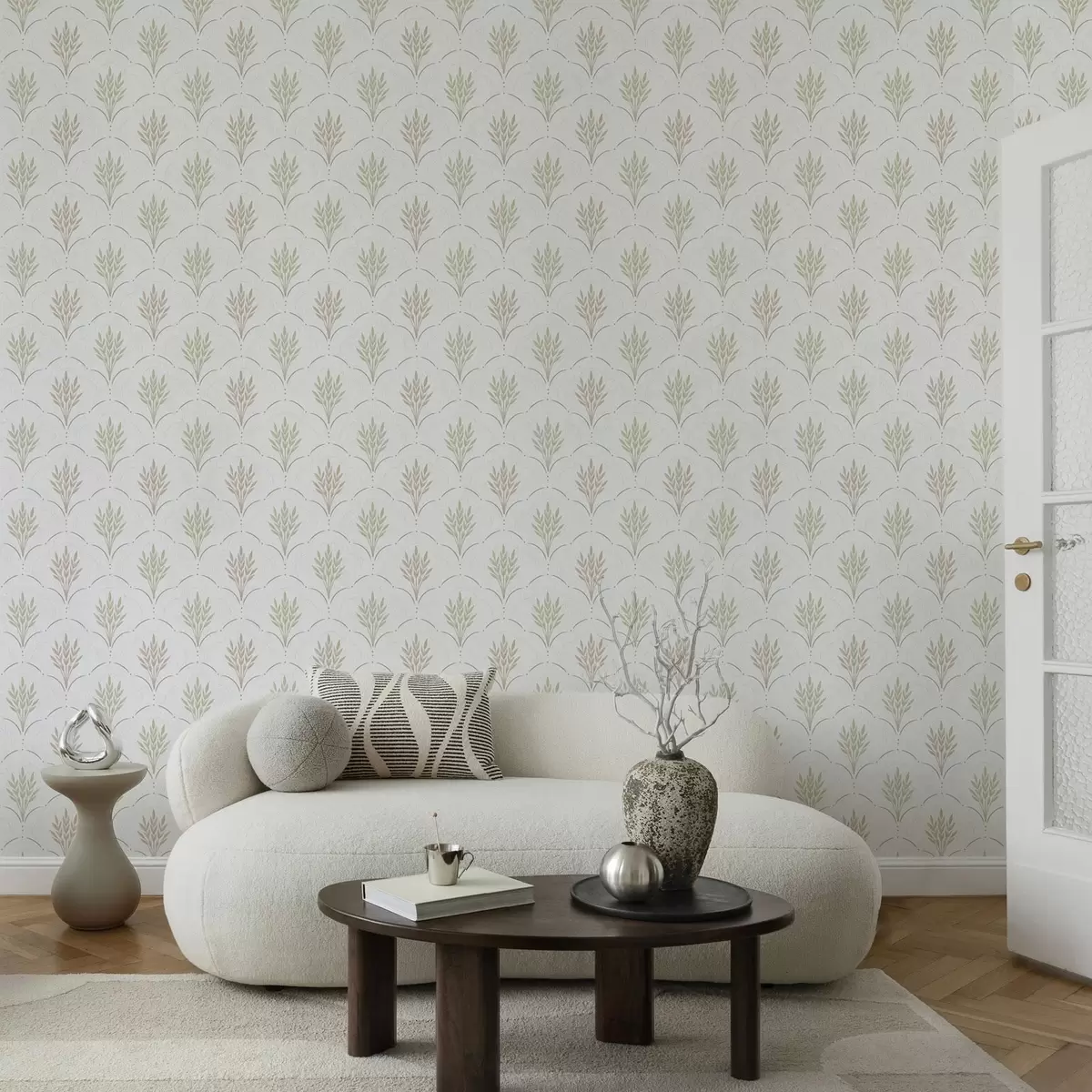 Tapeta Pšenica v lokastem ornamentu, mehke pastelne barve na beli podlagi Št. a00607v1