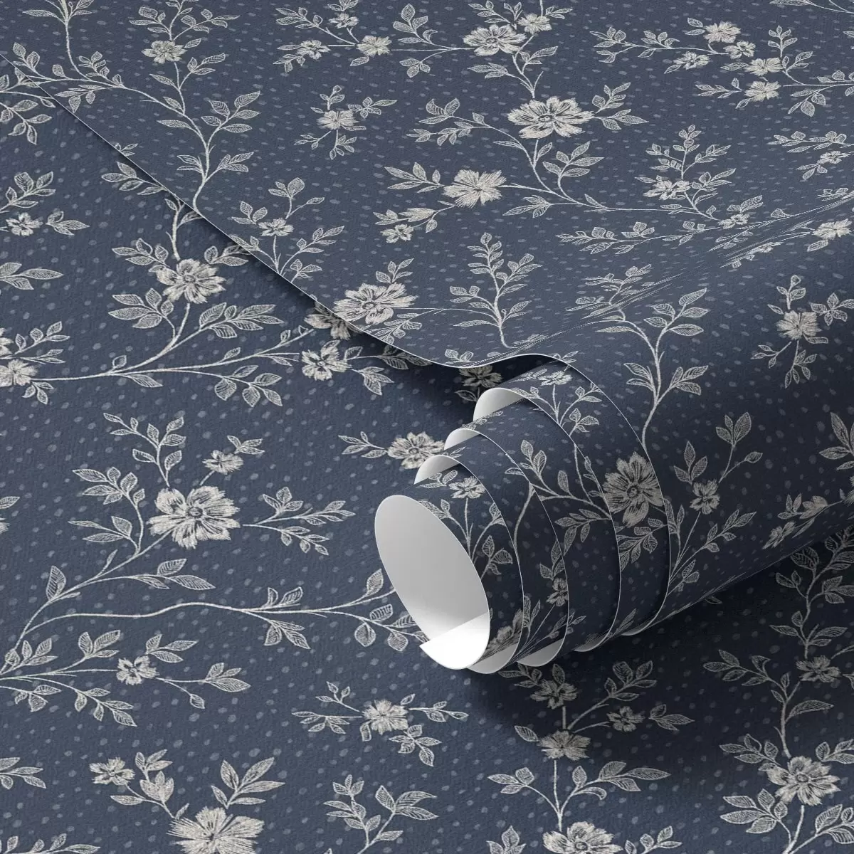 Tapeta Temno modro ozadje s tankimi bež vejami in cvetovi Št. a00612
