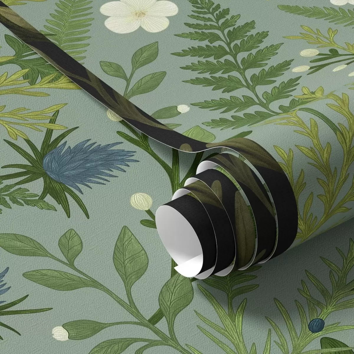 Tapeta Gozdna zelišča, radič in jagode na ozadju mete Št. a00621v1