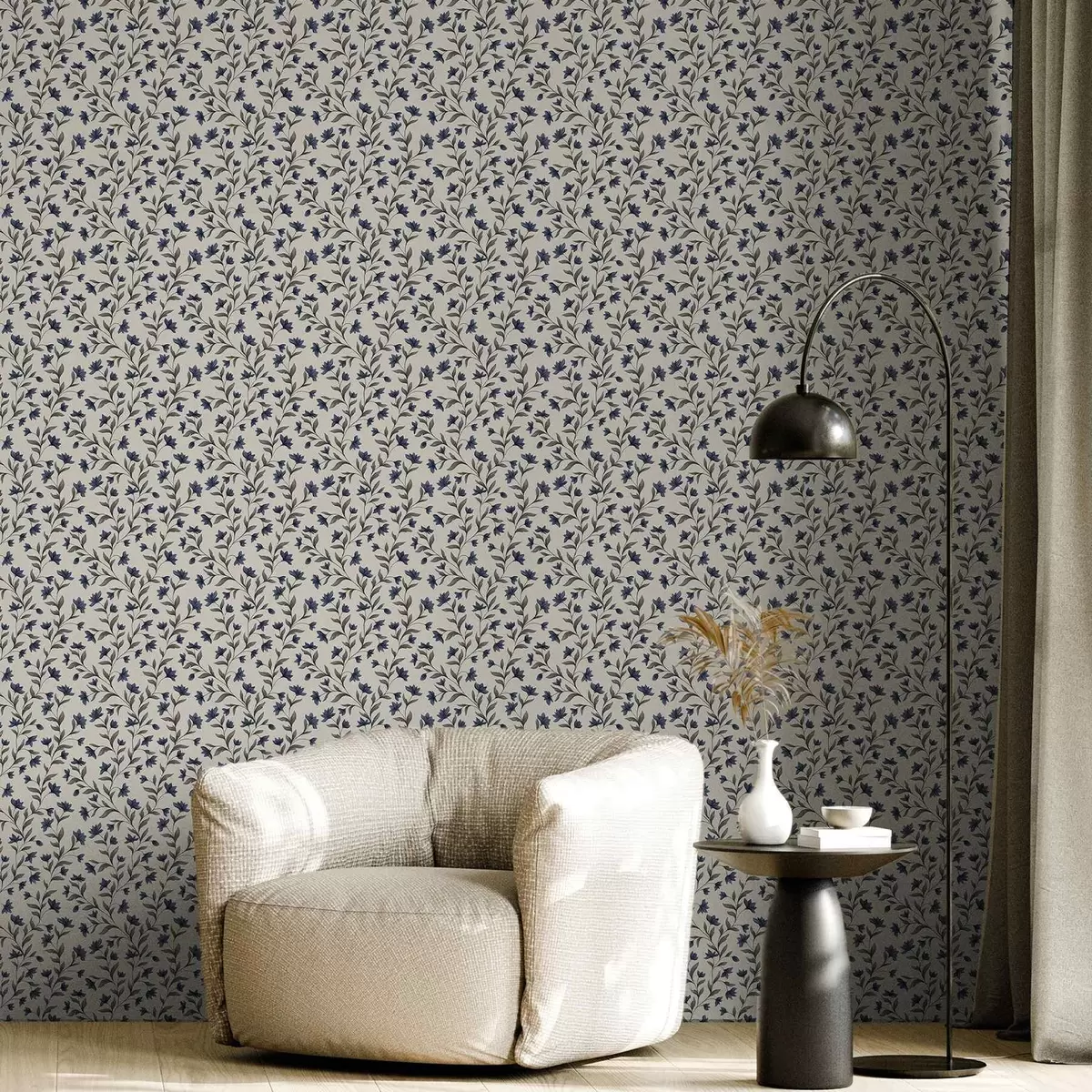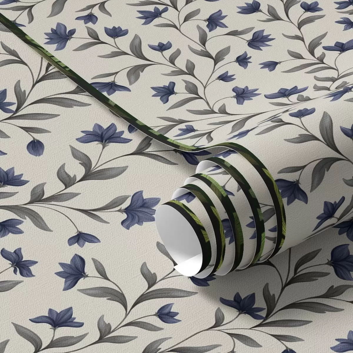 Tapeta Modri zvončki in siva zelenjava na svetlem ozadju Št. a00622v1
