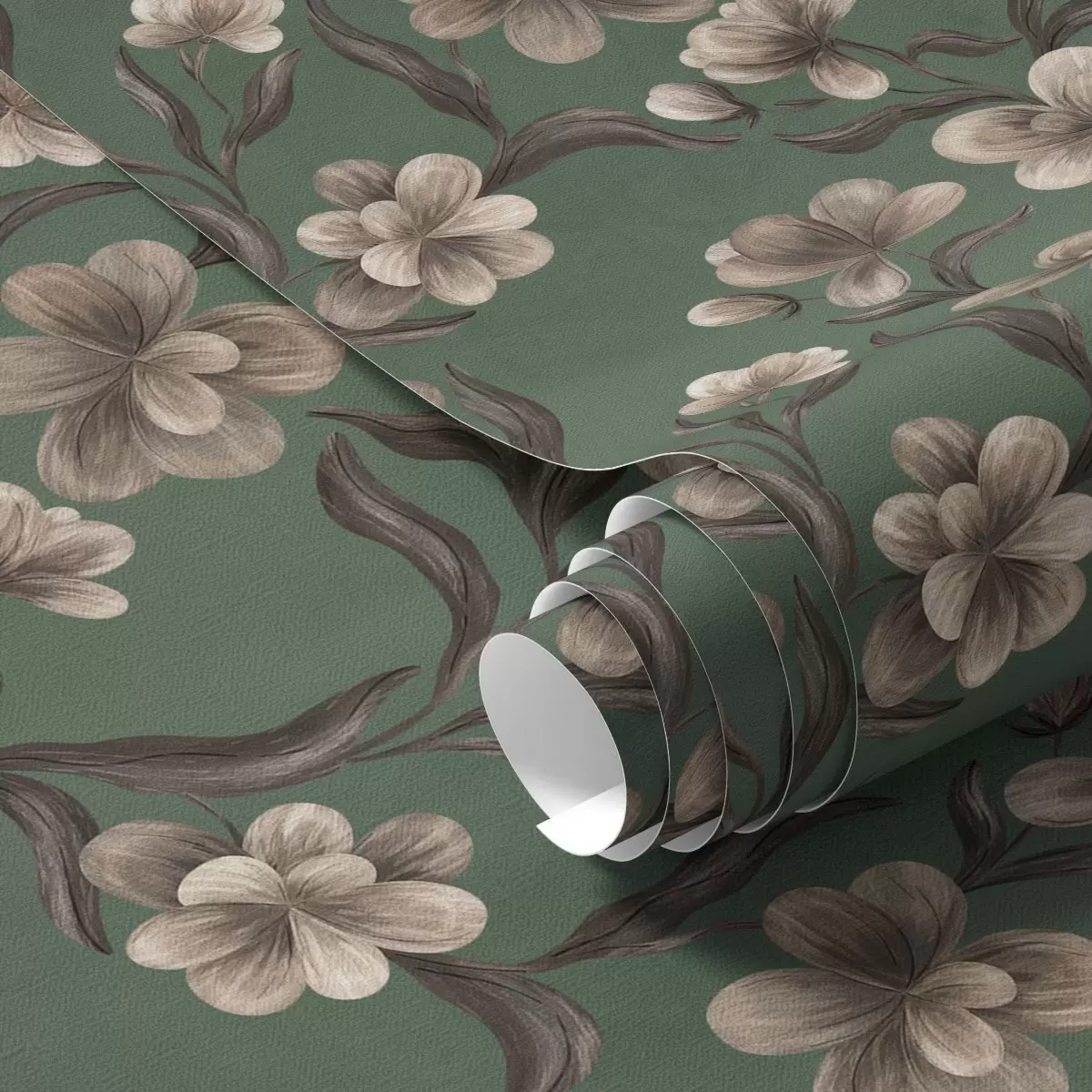 Tapeta Bež cvetovi na bogatem zelenem ozadju Št. a00626v3