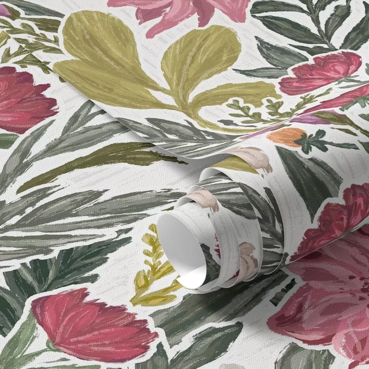 Tapeta Bujne rožnate in kremaste cvetlice na belem ozadju, impasto tekstura Št. a00629v1