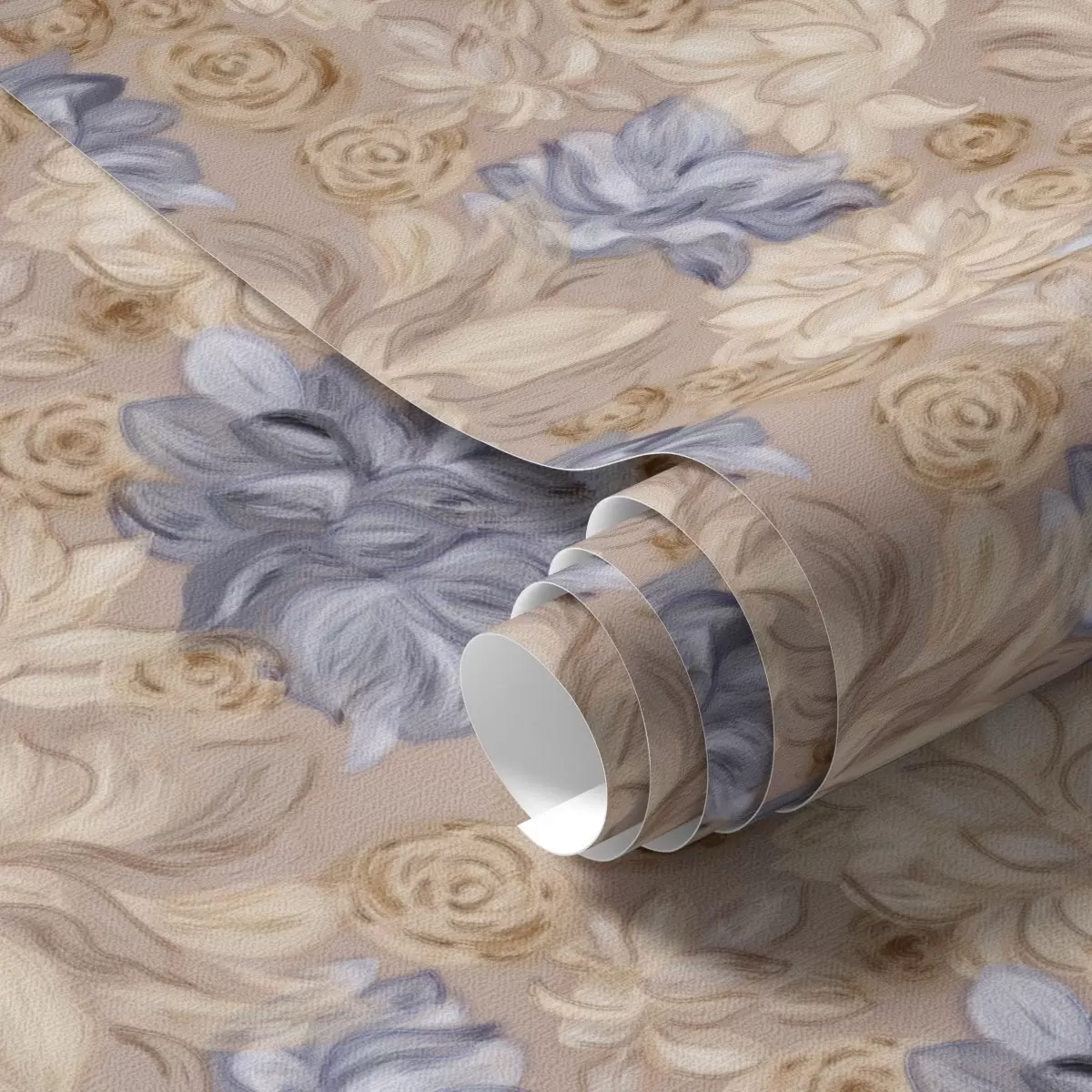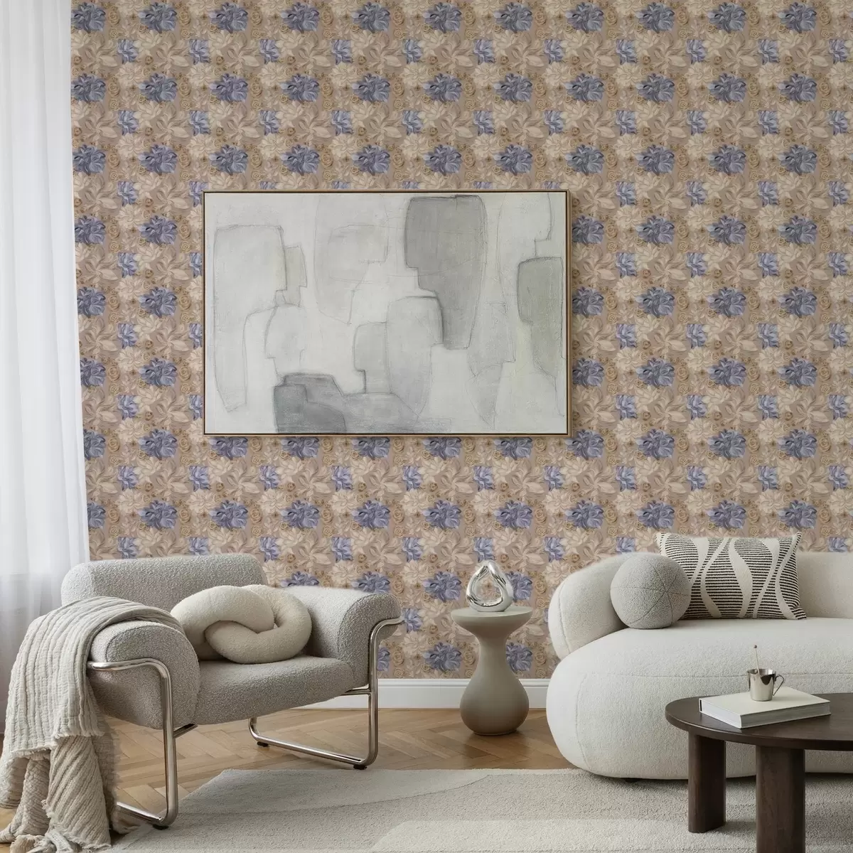 Tapeta Bujna krema in modri cvetovi v pastelnih barvah Št. a00634