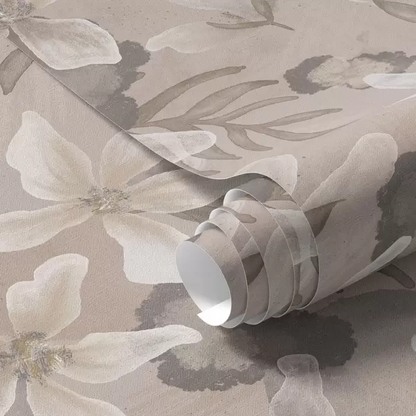 Tapeta Veliki bež cvetovi z abstraktnimi akvarelnimi madeži Št. a00635