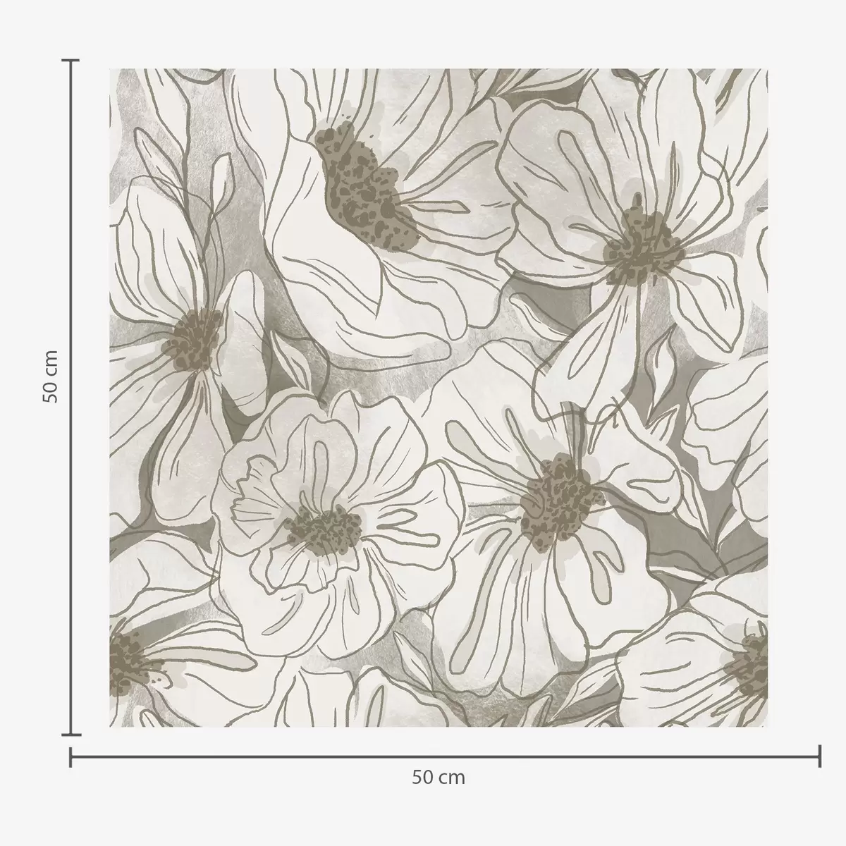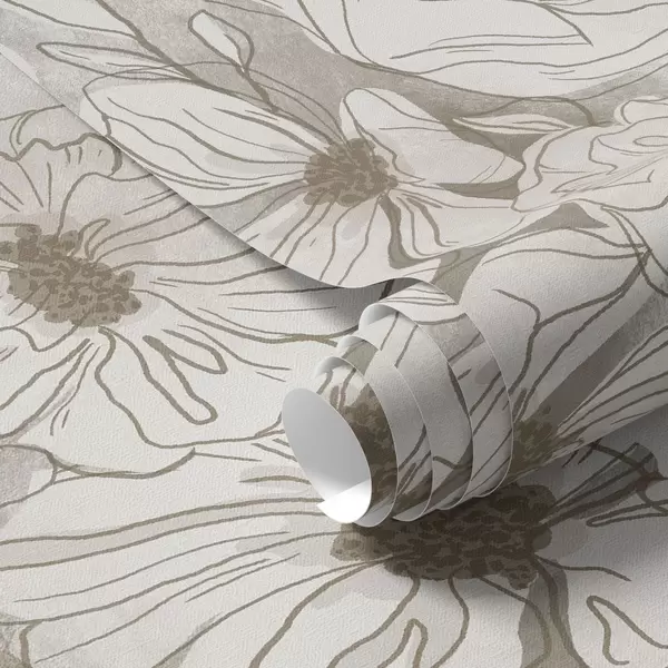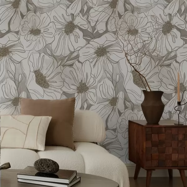Tapeta Linearne cvetlice v enobarvni bež-sivi paleti Št. a00636