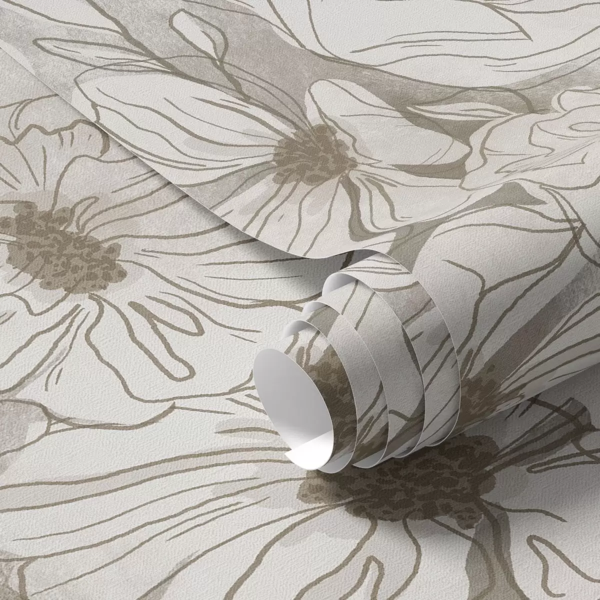 Tapeta Linearne cvetlice v enobarvni bež-sivi paleti Št. a00636