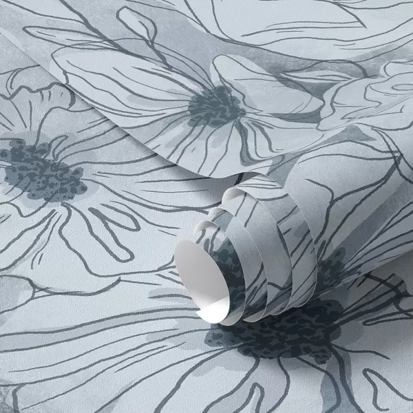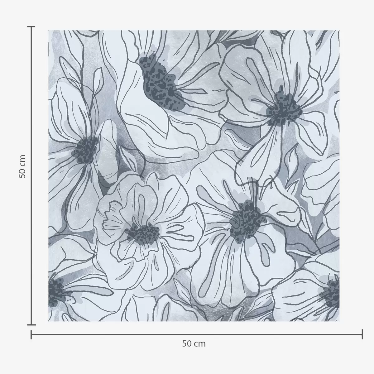 Tapeta Linearne cvetlice v hladni sivo-modri barvni paleti Št. a00636v2