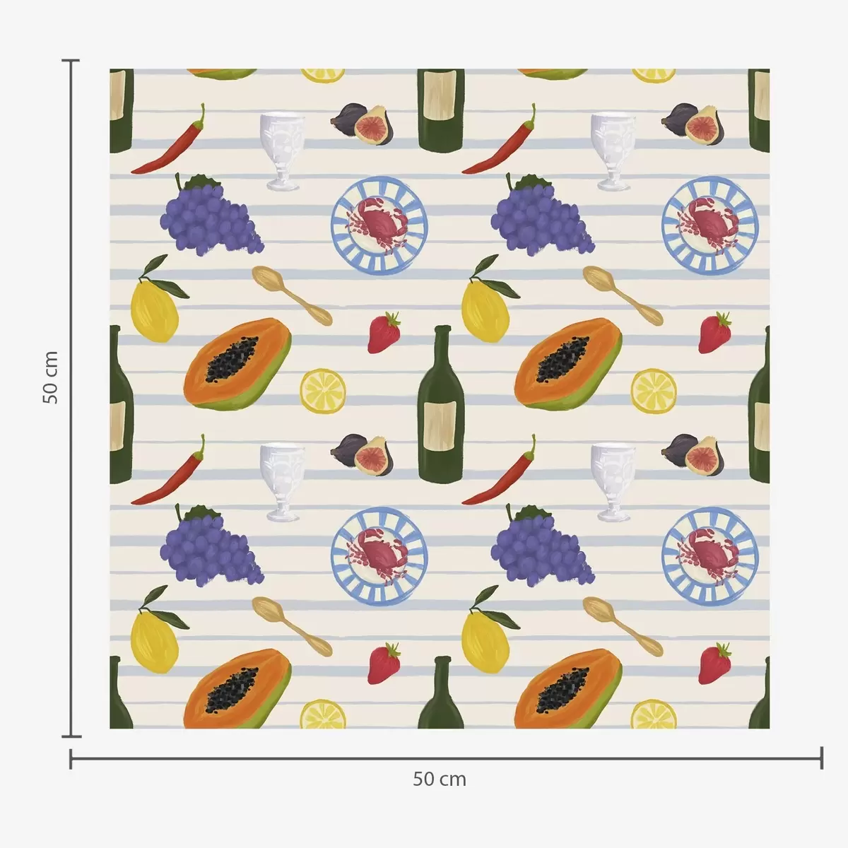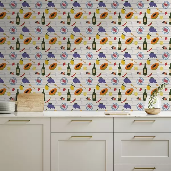Tapeta Kuhinjska slika s sadjem, kozarci in krožniki Št. a00638