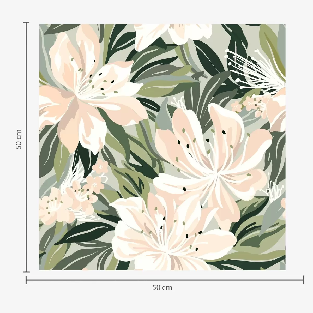 Tapeta Veliki kremasti cvetovi na svetlo zelenem ozadju Št. a00646