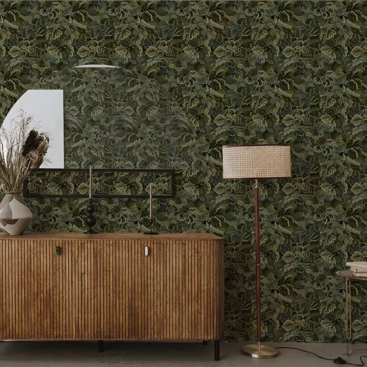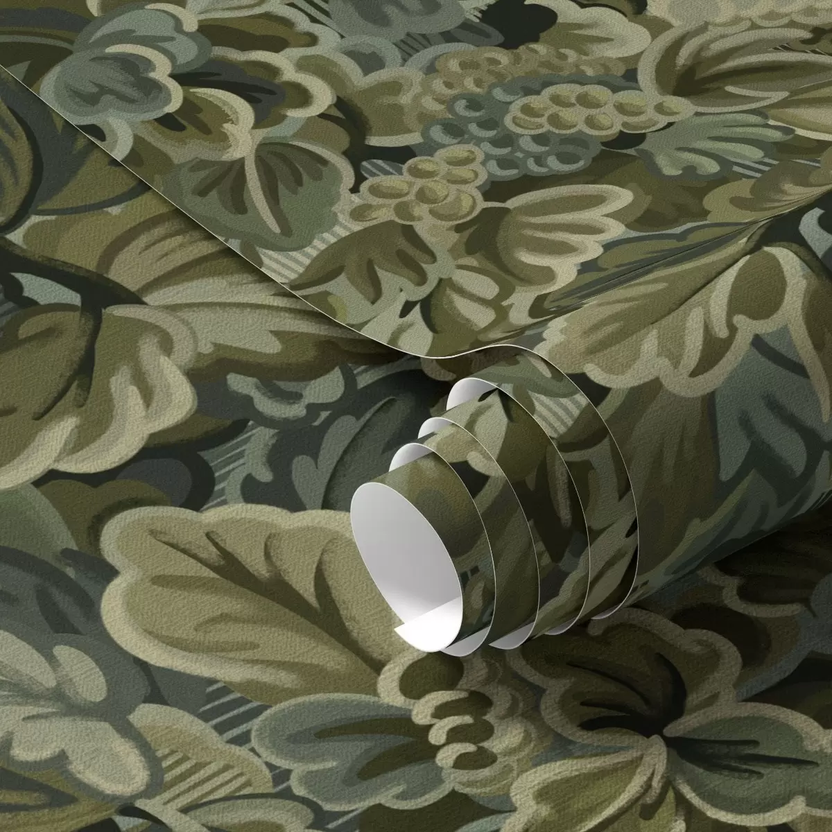 Tapeta Goste vinske liste v temno zeleni barvi Št. a00647