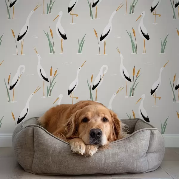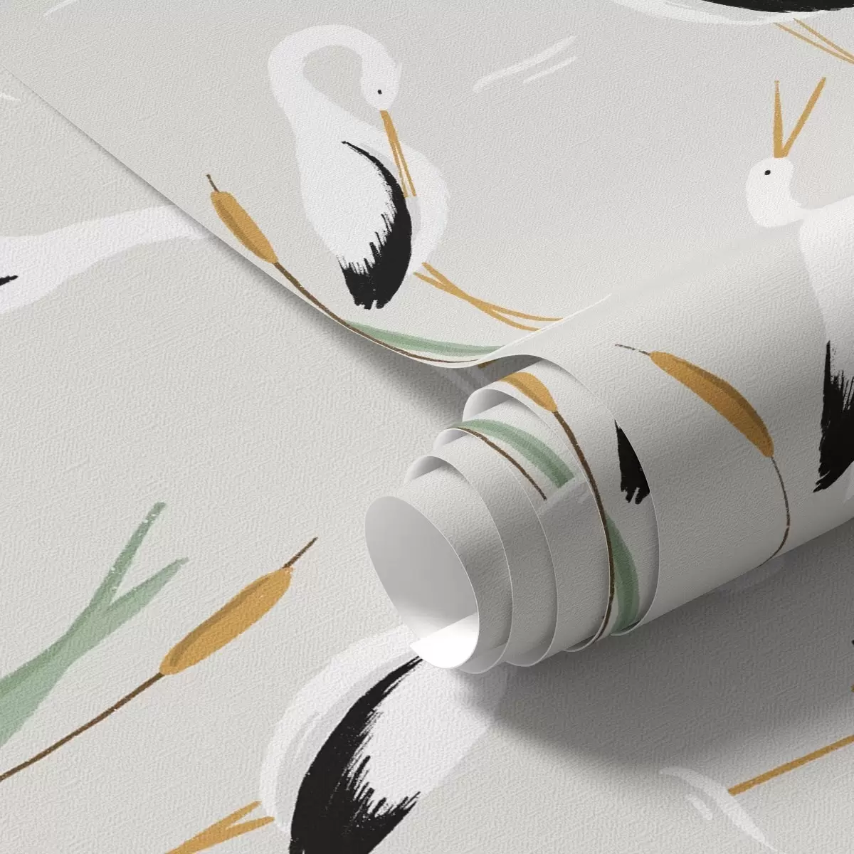 Tapeta Čaplje med trstjem na svetlo sivem ozadju Št. a00650
