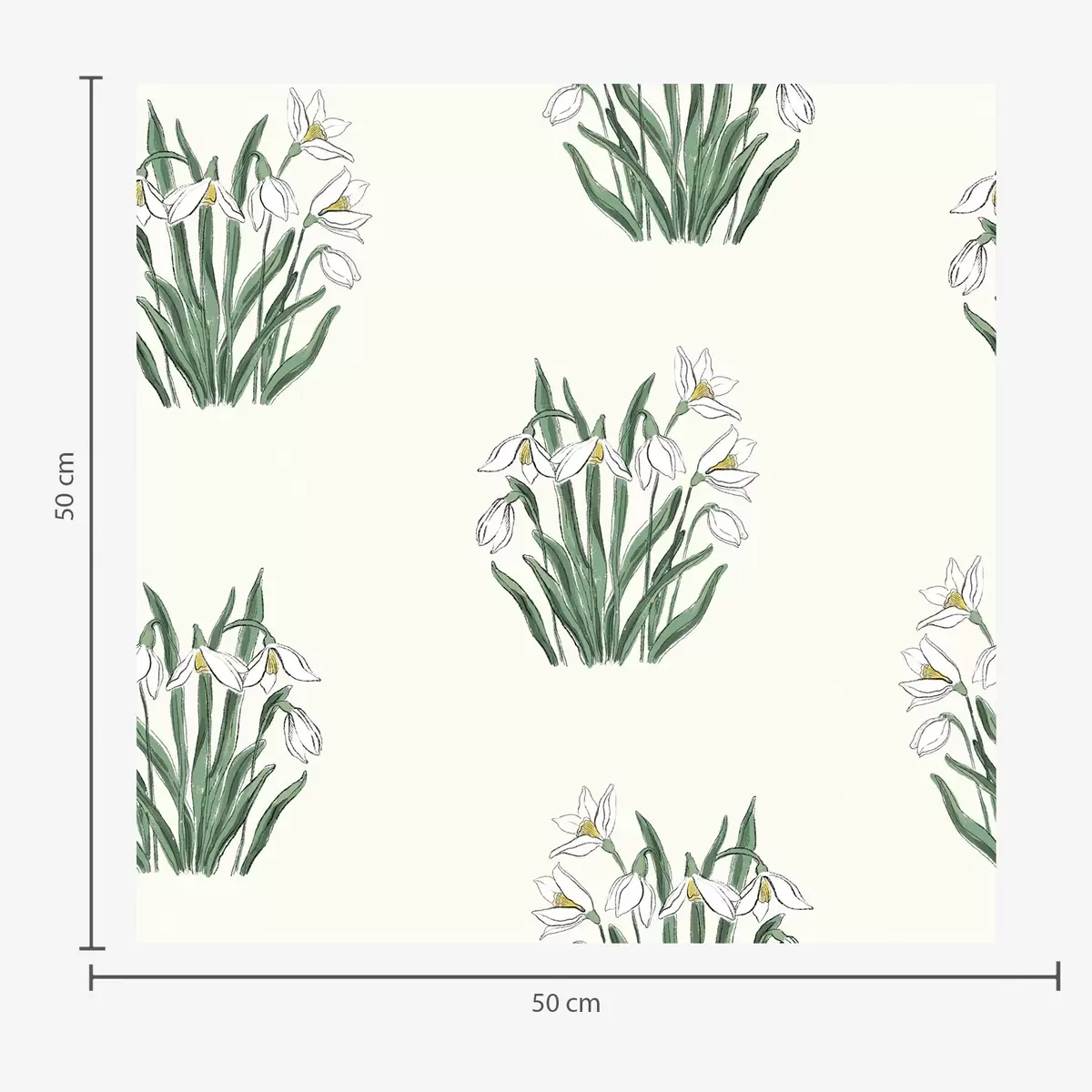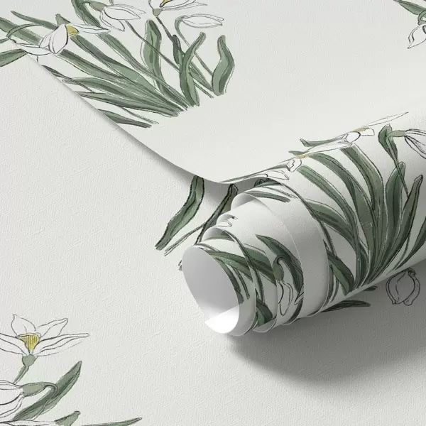Tapeta Zvončki z zelenimi listi na svetlo sivem ozadju Št. a00651v1