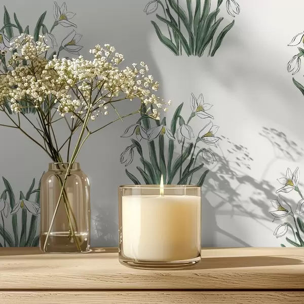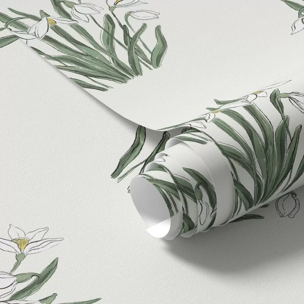 Tapeta Zvončki z zelenimi listi na svetlo sivem ozadju Št. a00651v1