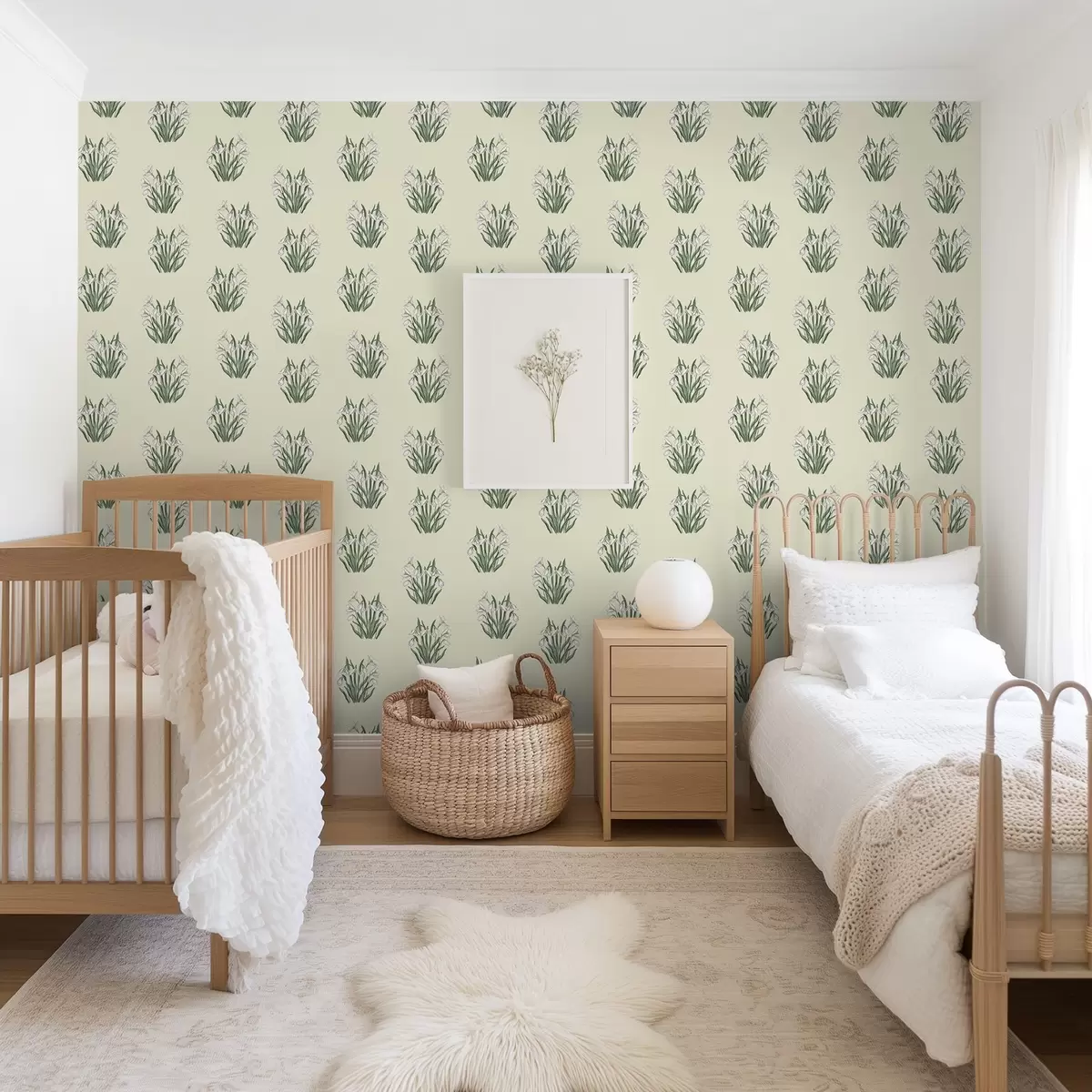 Tapeta Zvončki z zelenimi listi na kremastem ozadju Št. a00651v2