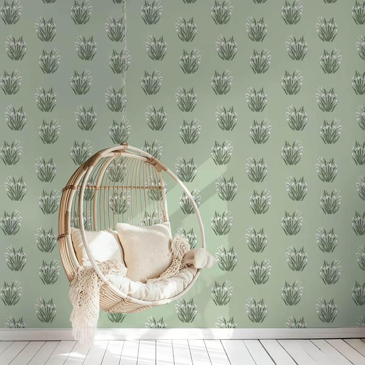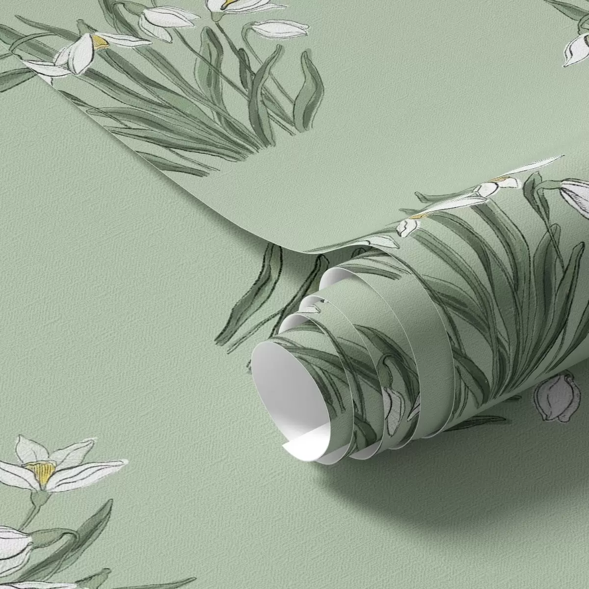 Tapeta Zimski zvončki z zelenimi listi na nežno zelenem ozadju Št. a00651v4