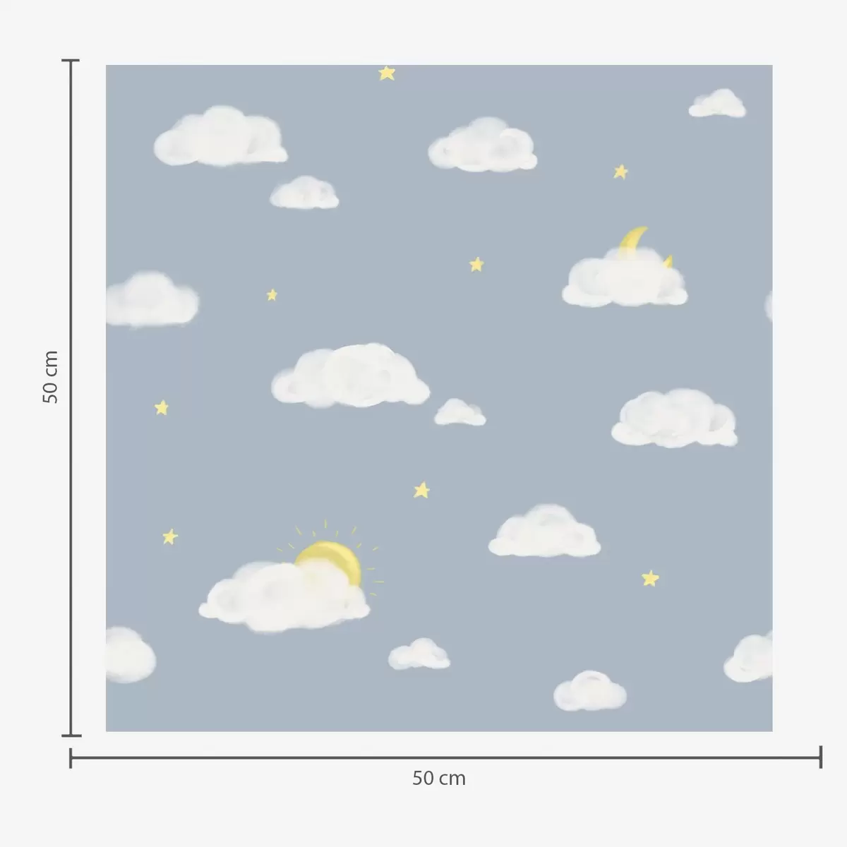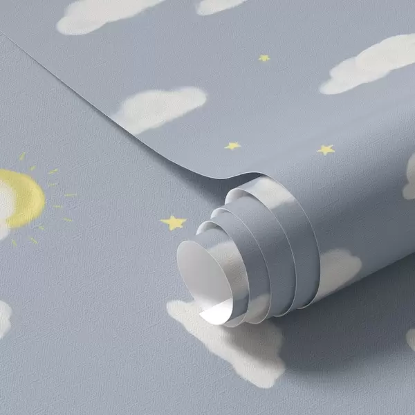 Tapeta Mehki oblaki, zvezde in sonce na modrem ozadju Št. a00652